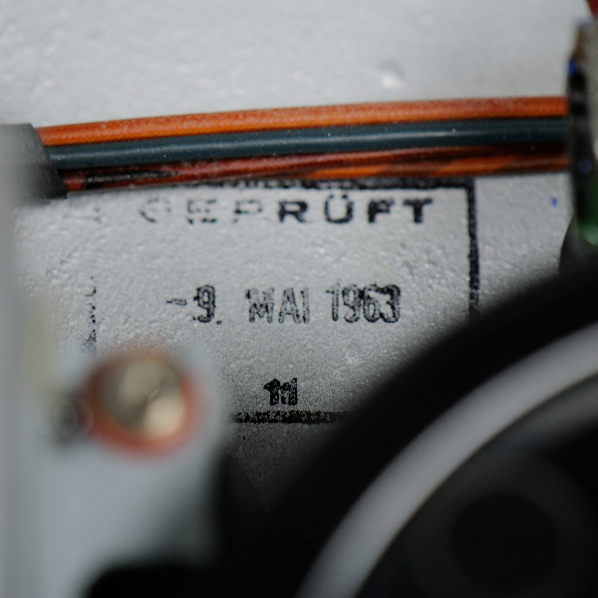 1963-05-09 (Stempel auf der Innenseite) 1962-02 (nur das Gossen Messwerk) 1972-12-20 (Reparatur Messverstärker, Stempel) |