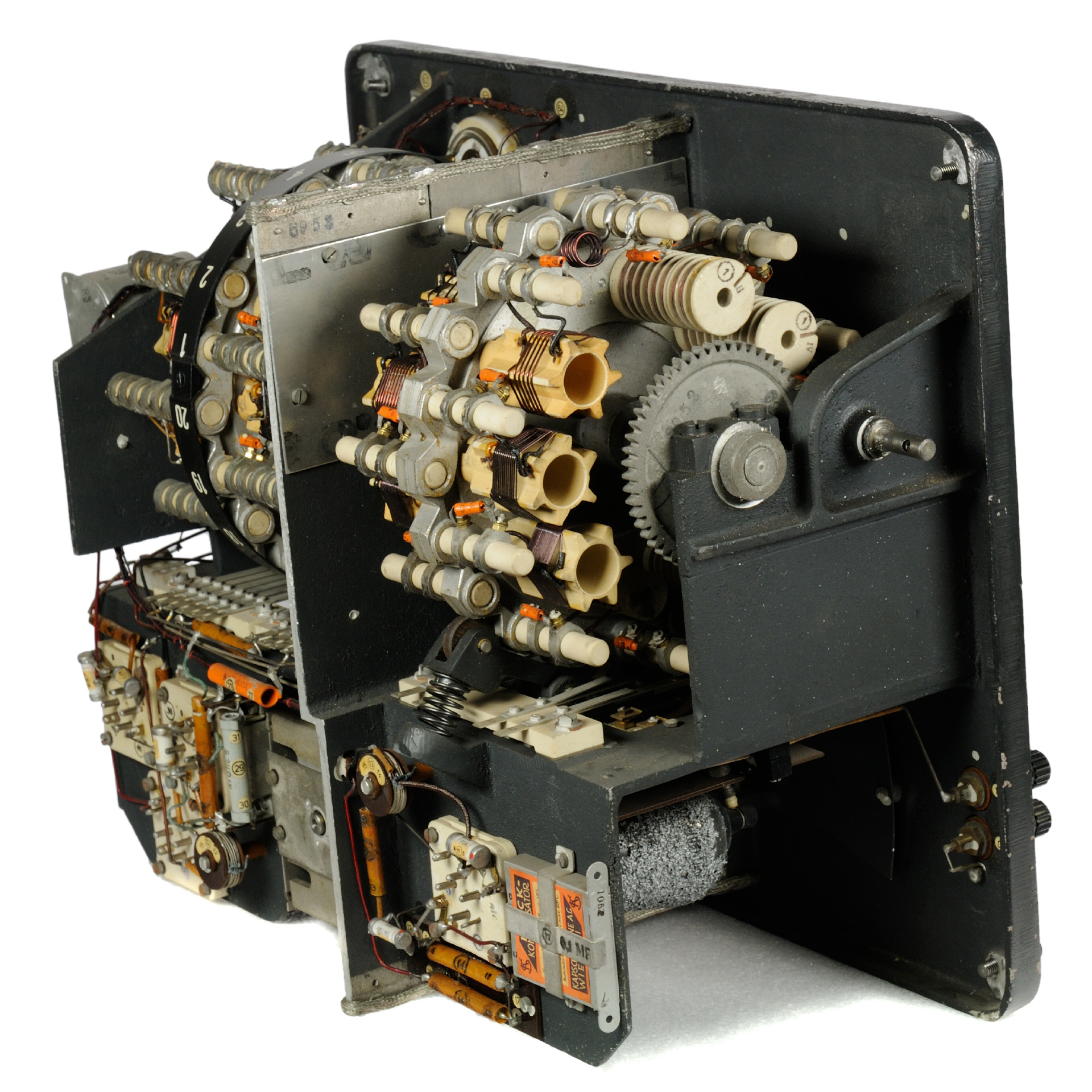 | Material | Das Gehäuse und die tragenden Teile sind aus Leichtmetallguß, als Spulenträger werden Calitkörper und -stäbe verwendet. Der Zweifach-Abstimmungskondensator ist eine Spezialkonstruktion mit kleinstem Temperaturgang. |