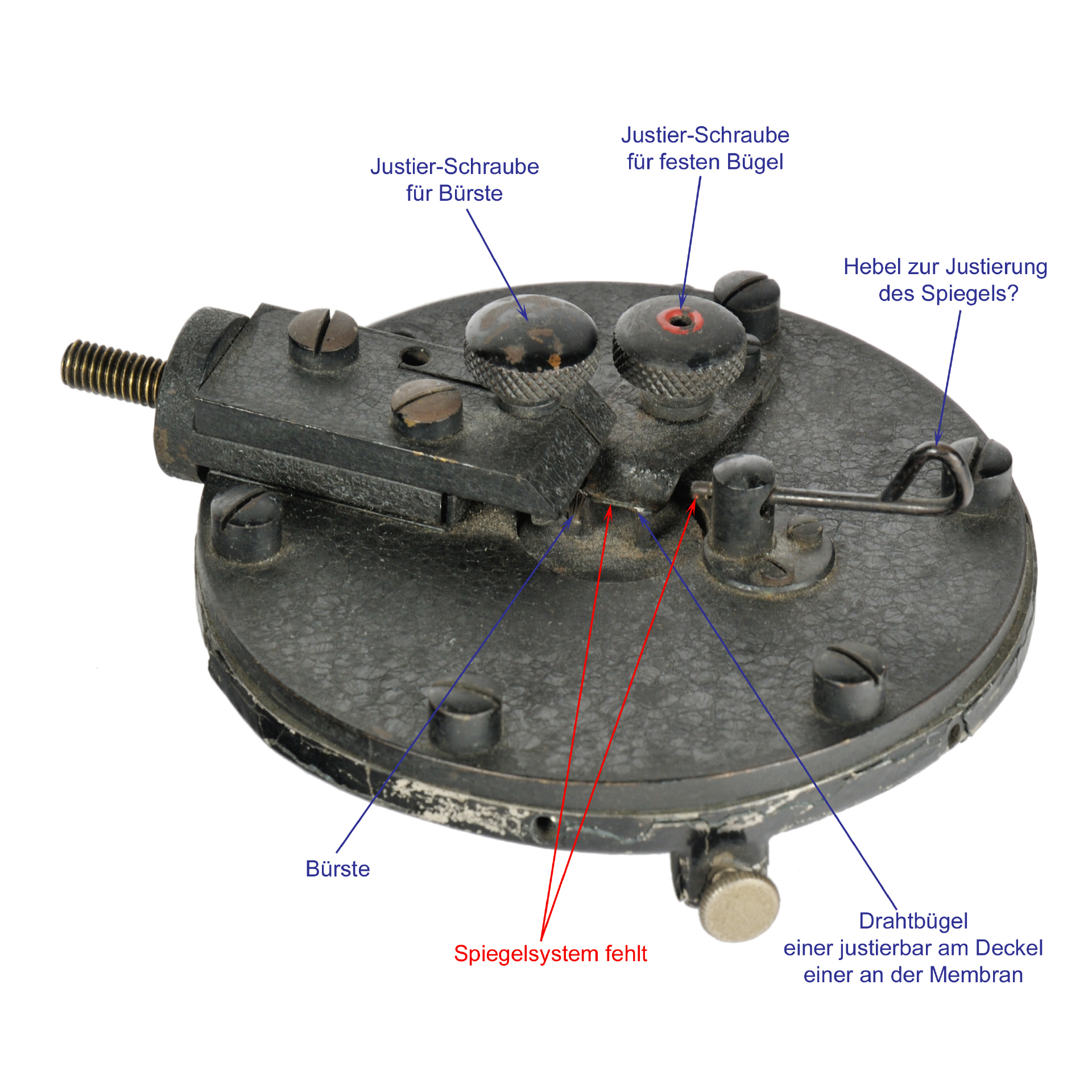 4/- Unvollständig, nicht betriebsbereit eine Messdose fehlt, bei der vorhandenen Messdose fehlt das Spiegelsystem; teilweise gravierende Schäden durch Zinkfraß. |