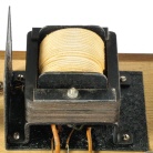 Potentiometer, hergestellt von der Firma H. Grau ("Hegra"). Transformator, Hersteller unbekannt. Interessant ist der verwendete textilbezogene Draht für die Sekundärwicklung. |