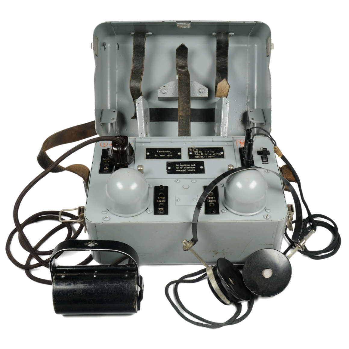 Der Kabelsucher besteht aus einer Spule zur Aufnahme der Feldenergie, einem zweistufigen Niederfrequenz-Verstärker und einem Doppelkopfhörer. Als Eingang sind zwei Buchsenpaare vorgesehen. Über das erste Buchsenpaar wird die Suchspule angeschaltet, die dann unmittelbar auf das Gitter der ersten Röhre arbeitet. Der Vorübertrager VÜ wird dabei durch die Einführung des Steckers in die Anschlußbuchsen doppelpolig abgeschaltet. Das zweite mit „Eingang 200 Ohm“ bezeichnete Buchsenpaar dient für einen niederohmigen Anschluß des Kabelsuchers. Die beiden Verstärkerstufen sind durch den Zwischenübertrager ZÜ miteinander verbunden. An die beiden Buchsenpaare „Anode 1. Röhre“ und „Gitter 2. Röhre“ kann an Stelle des Zwischenübertragers ein anderes Zwischenglied angeschlossen werden. Die Abtrennung des Zwischenübertragers erfolgt hier wieder durch Buchsenkontakte.