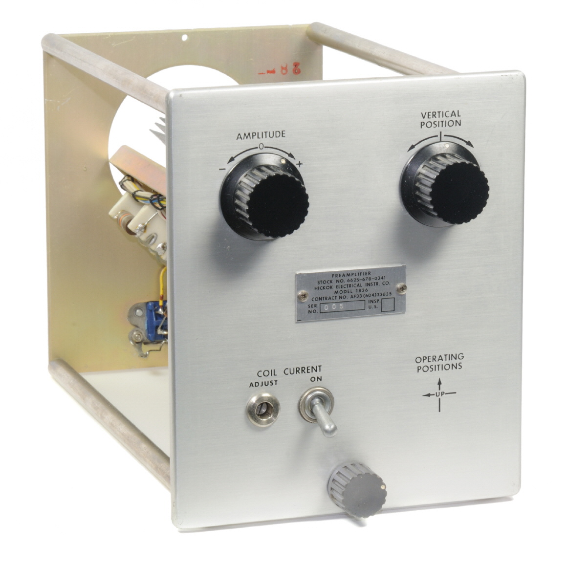 Typenschild auf der Frontplatte: Preamplifier Stock No. 6625-678-0341 Hickok Electrical Instr. Co. Contract No. AF33(604)33635 Ser. No. 005 Aufkleber im Inneren: U.S. GOVERNMENT PROPERTY CONTRACT NO. AF04-606-B197 ITEM NO. 3347 AFTO FORM (Aufkleber mit Prüfzertifikaten) |