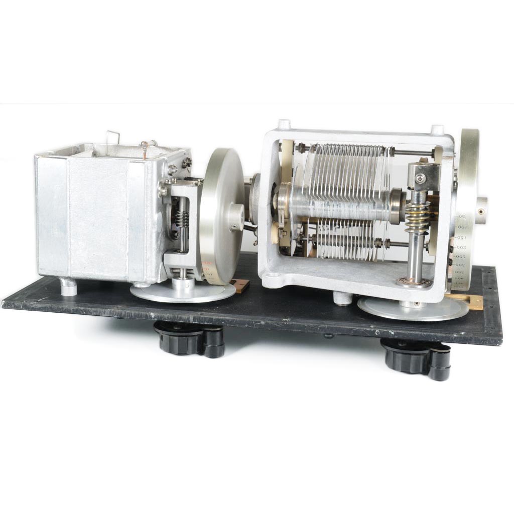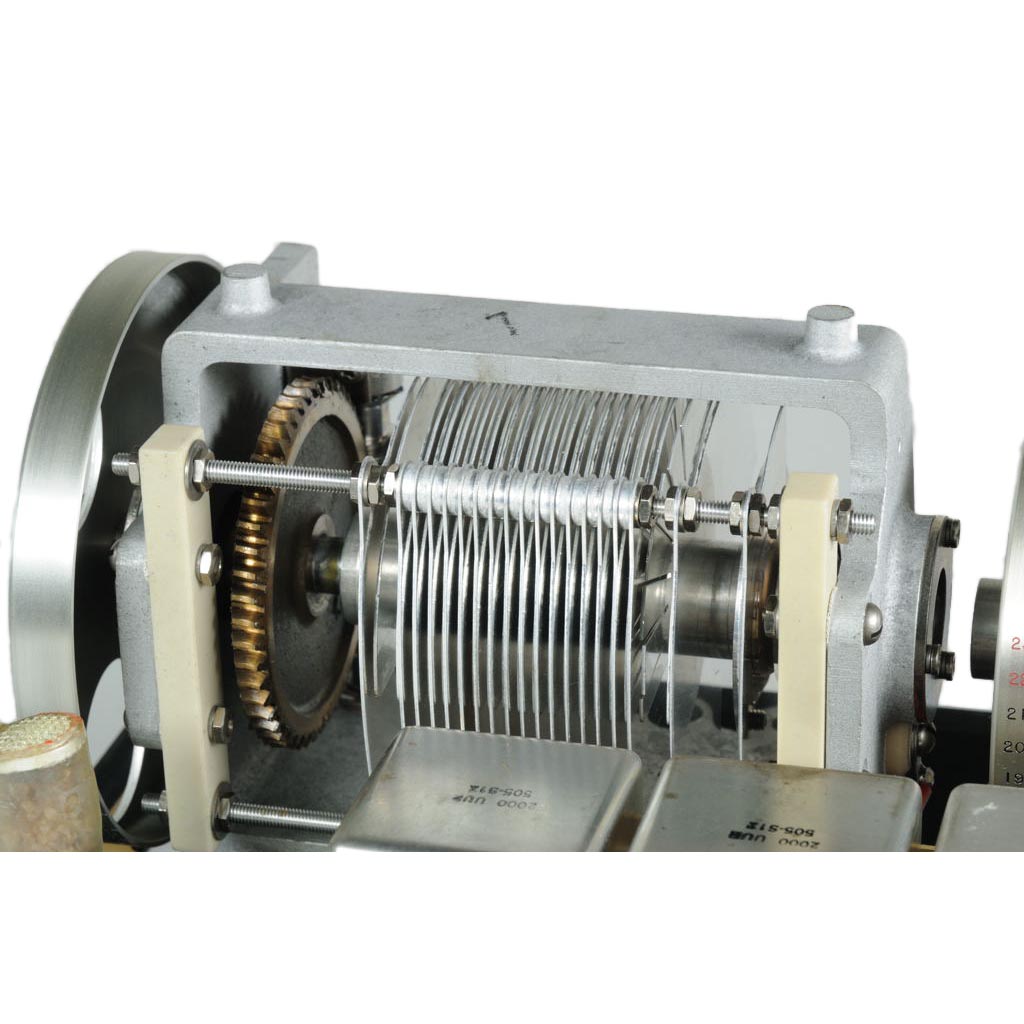 Das Gerät besteht aus zwei Präzisions Drehkondensatoren und mehreren festen Kondensatoren, die über einen Umschalter geschaltet werden.