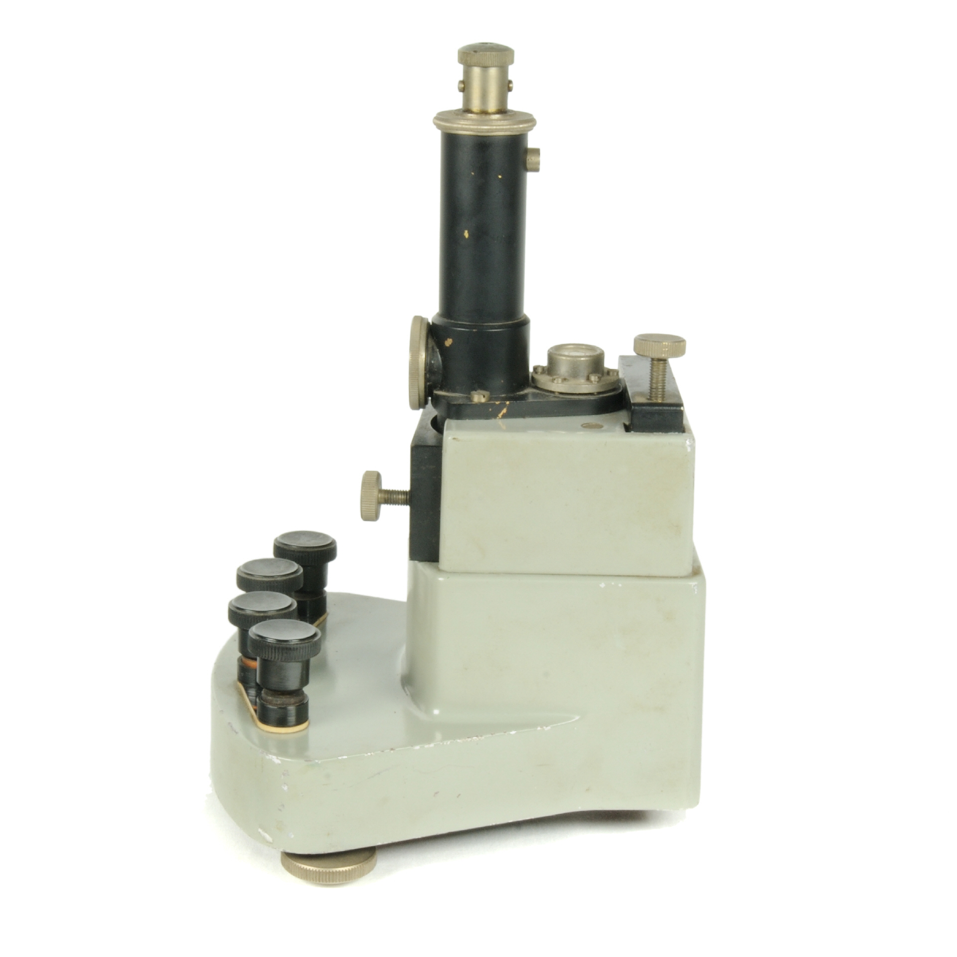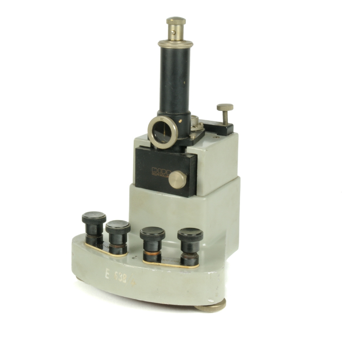 | Markierungen | Auf der Fron ist KIPP DELFT-HOLLAND eingraviert, eine Seriennummer ist nicht zu finden. Handschriftlich ist der Sockel mit "E 538" beschriftet, dies scheint eine alte Inventarnummer zu sein. Der Metallring des Schutzglases vor dem Spiegel ist mit "KC" oben mittig beschriftet. |