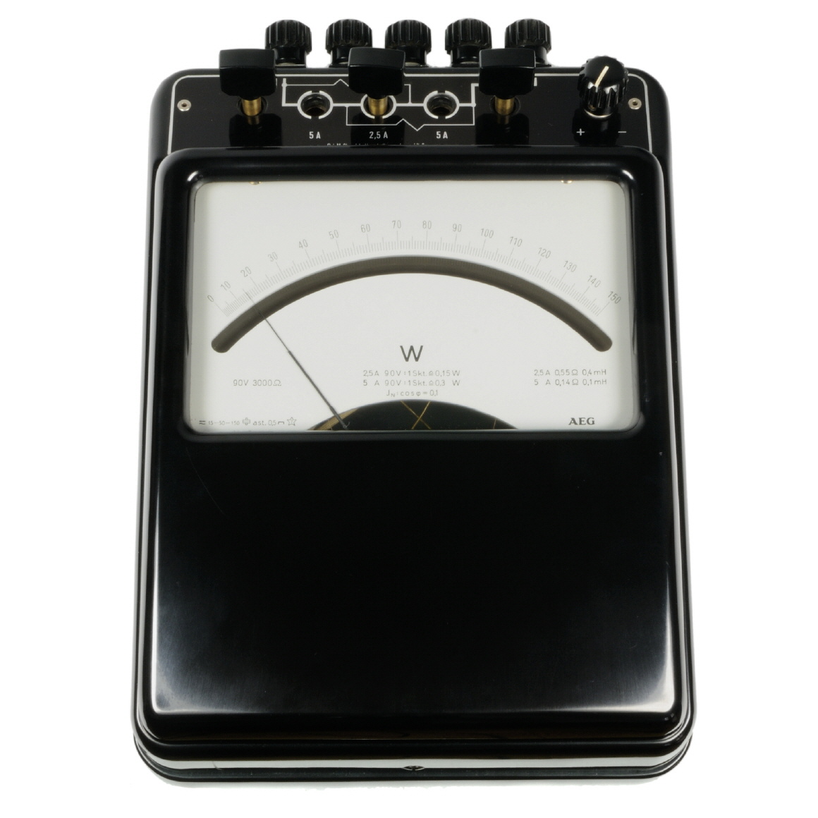 Präzisions-Wattmeter (Elektrodynamisches Messwerk, DC, AC 15 - 150 Hz, 0,5% Genauigkeit, 2 kV Prüfspannung; 90 V / 3000 Ohm, nur für waagrechte Lage geeignet) |