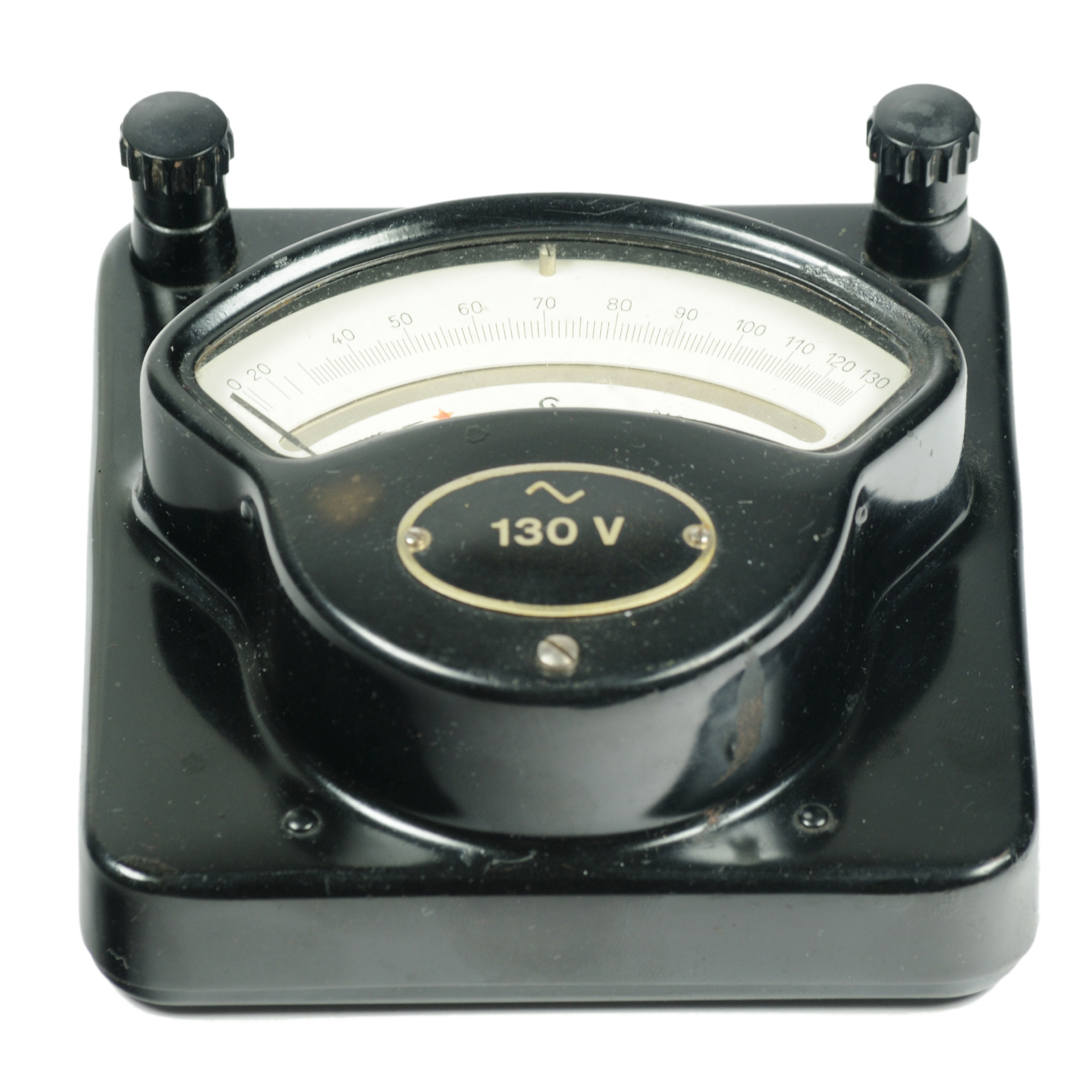 Spannungsmesser mit Dreheisenmeßwerk für Frequenzen bis 100 Hz; Skalenbezifferung 0 ... 130; Unterteilung beginnt bei 30, danach nahezu proportionale Skala; Stromverbrauch bei Nennspannung 30 mA; Meßbereich 130 V; Messgenauigkeit: ± 1%; Abmessungen: (BTH) 110 · 118 · 50 mm; Masse: 0,58 kg;