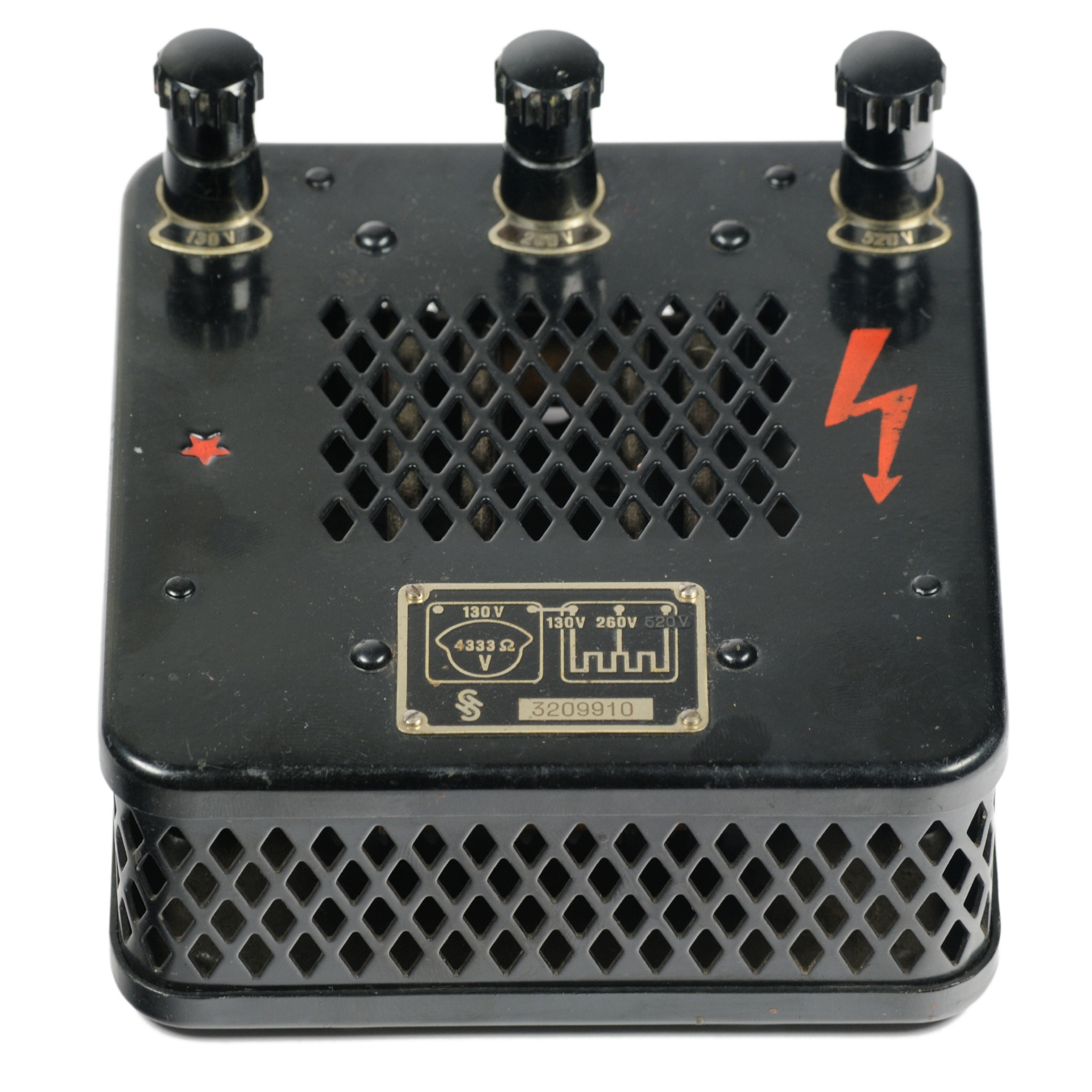 Vorwiderstand zum Spannungsmesser für die Messbereiche bis 260 und 520 Volt; Abmessungen: (BTH) 110 · 118 · 50 mm; Masse: 0,60 kg;