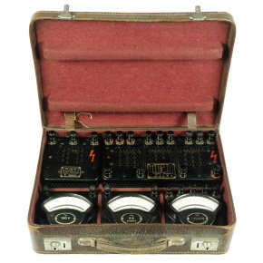 | Lederkoffer mit Type-Z Messgeräten und Vor- und Nebenwiderständen zur Leistungsmessung in Wechselstromnetzen | |