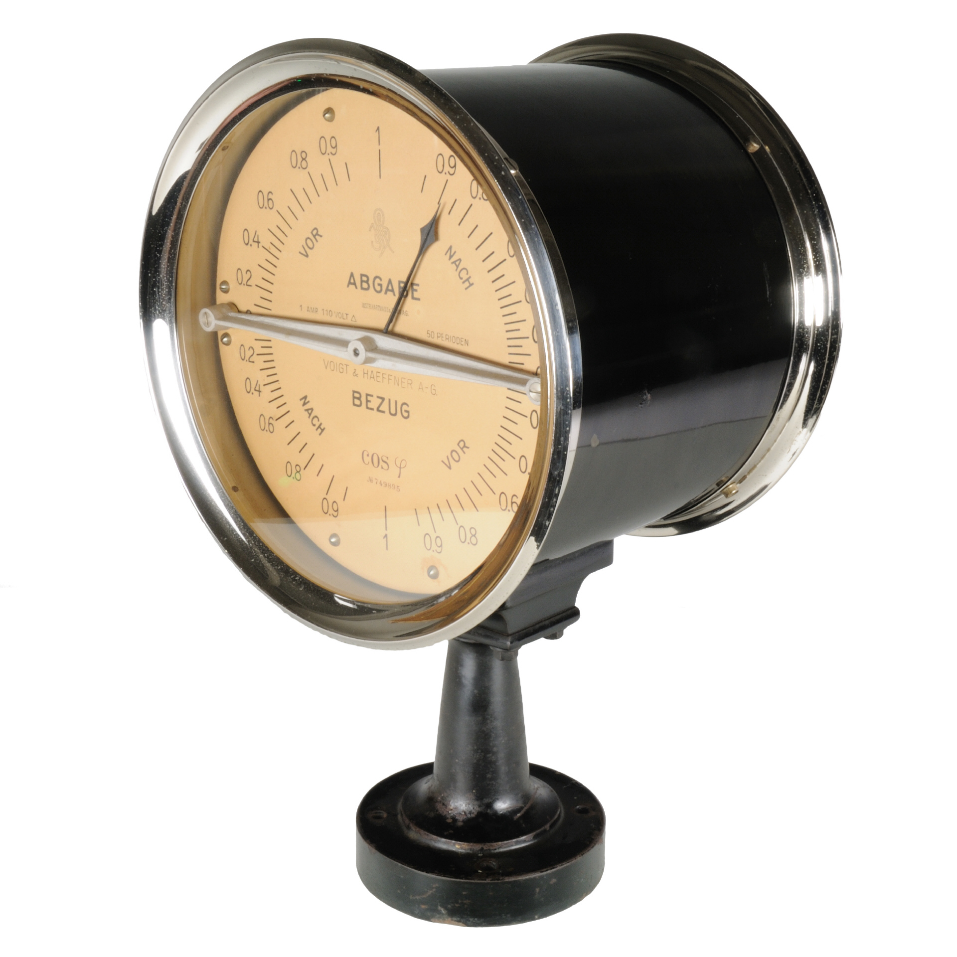 Typ: Gph IV Elektrodynamischer Phasenmesser mit umlaufendem Zeiger für Leistungslieferung in wechselnder Richtung (Abgabe und Bezug), beides für Voreilung und Nacheilung. |