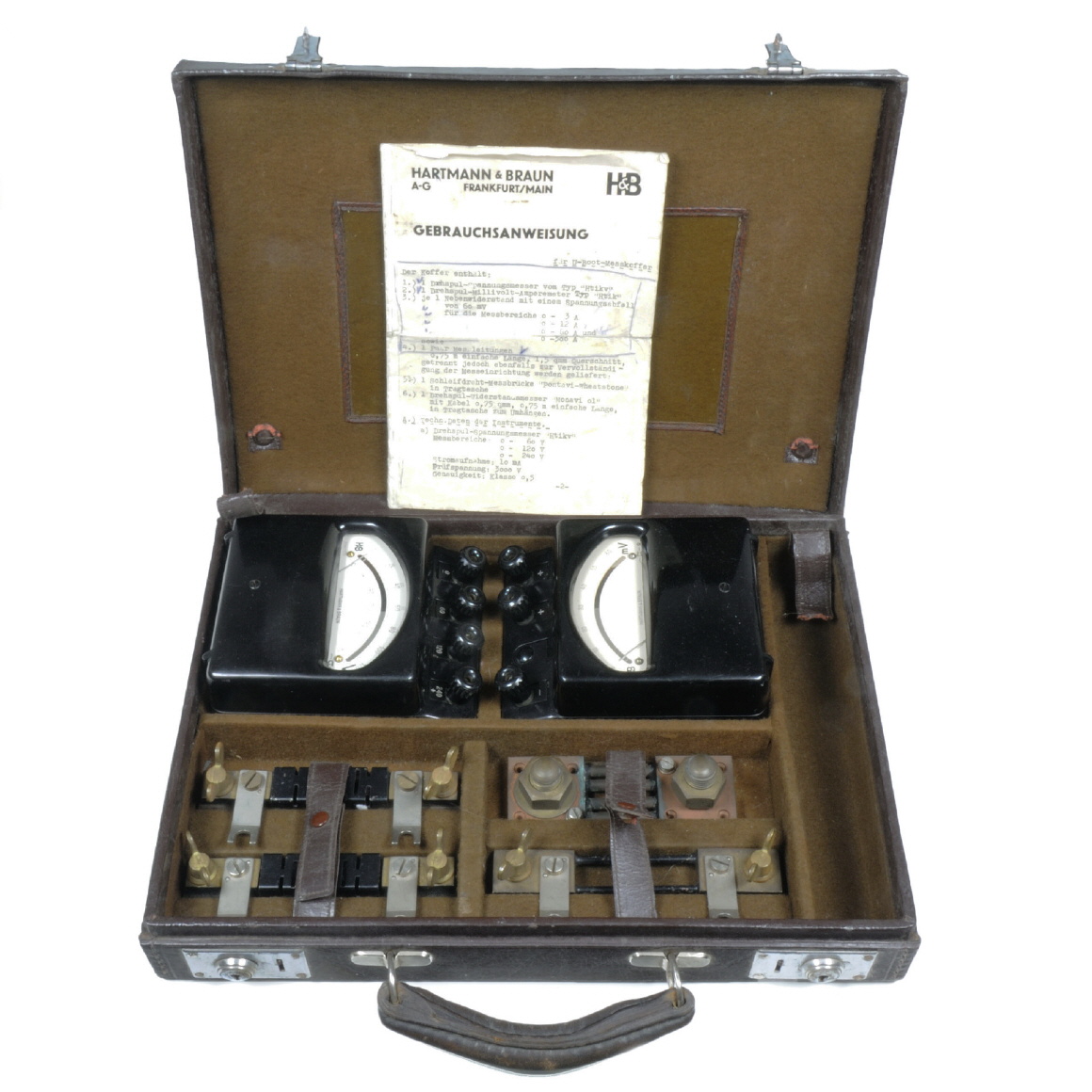 Der Messkoffer wurde für den Einsatz auf U-Booten der Deutschen Kriegsmarine von Hartmann & Braun gefertigt. Das vorliegende Exponat stammt aus dem Jahr 1943. Es ist nicht bekannt, auf welchem U-Boot dieser Koffer zum Einsatz gekommen ist.