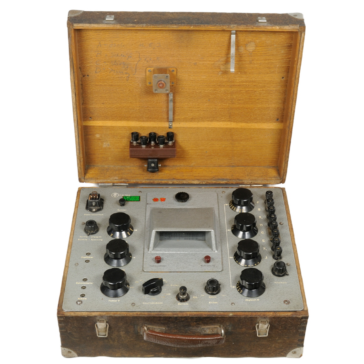 | Material | Eichenholz, Aluminium, Messing, Manganin, Pressstoff, Kunsttoff |