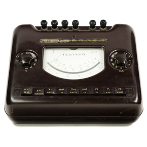 Dieses Gerät ist ein Drehspul - Vielfach - Meßinstrument für Strom-, Spannungs- und Widerstandsmessungen mit 57 Meßbereichen. Zur Gleichrichtung des Wechselstromes werden Germanium-Dioden verwendet. Das TESTAVO eignet sich daher neben den üblichen Gleich- und Wechselstrommessungen bestens für Messungen im Tonfrequenzgebiet.