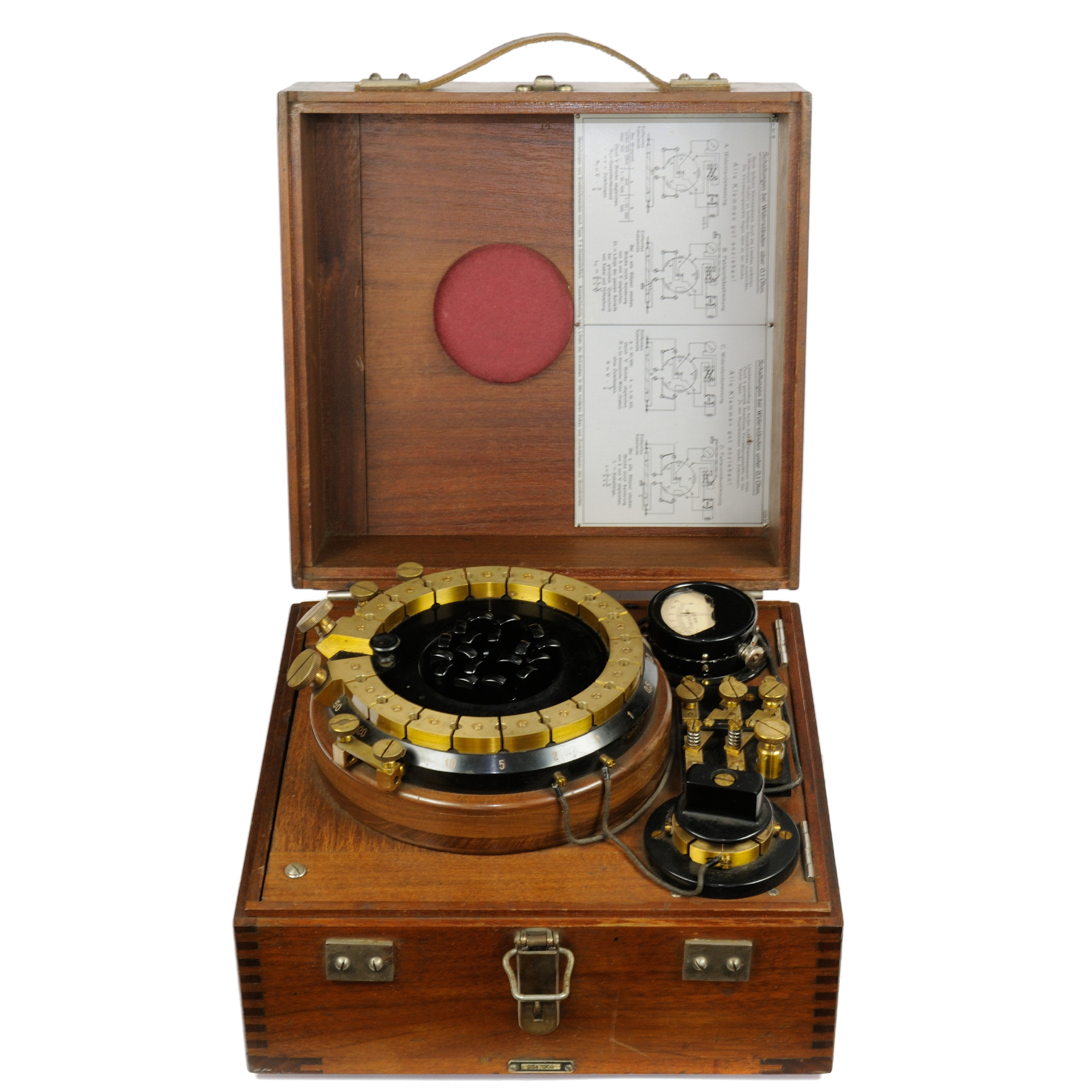 ![[00171] Montage- und Fehlerortungsmeßbrücke mit Stöpselschaltung, in Holzkasten mit Ledergriffen, Drehspulgalvanoskop; Siemens & Halske; ca. 1920](../../../images/00171_d_siemens_messbruecke_gesamt2table25.jpg)