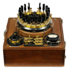 ![[00171] Montage- und Fehlerortungsmeßbrücke mit Stöpselschaltung, in Holzkasten mit Ledergriffen, Drehspulgalvanoskop; Siemens & Halske; ca. 1920](../../../images/00171_d_siemens_messbruecketable25.jpg)