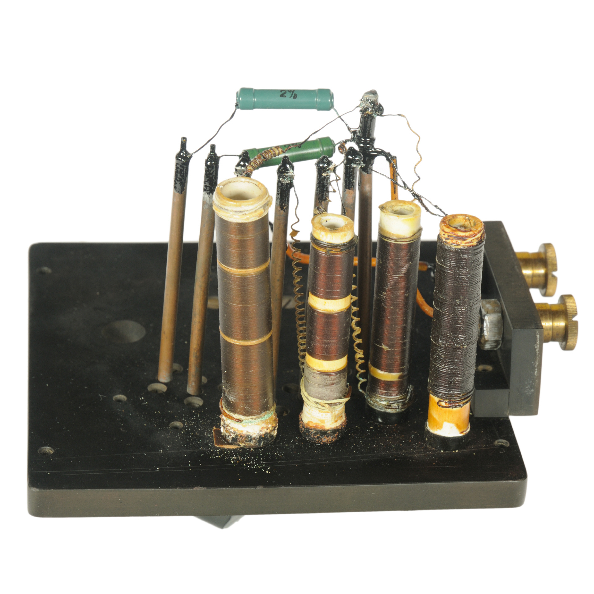 2/E Originalzustand, die eingebauten Manganin-Widerstände sind teilweise durch Kontaktkorrosion (siehe Detailaufnahmen) an den Lötstellen beschädigt und nicht mehr funktionsfähig. |