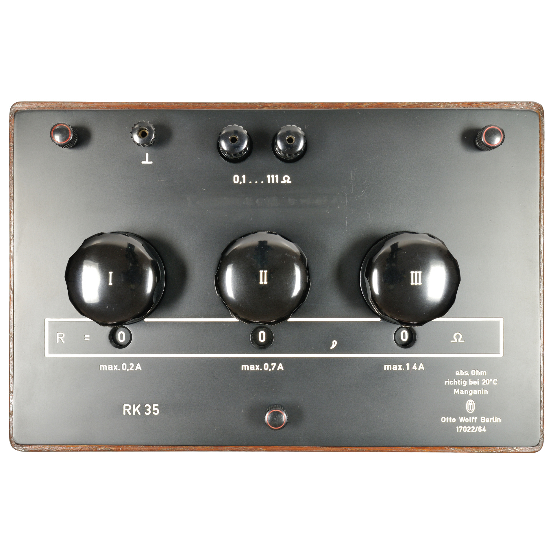 ![[00539] Kurbelwiderstandskasten mit 3 Dekaden, 0,1 - 111 Ohm; Otto Wolff, Berlin; 1964](../../images/00539_d_wolff_rk35_obentable25.jpg)