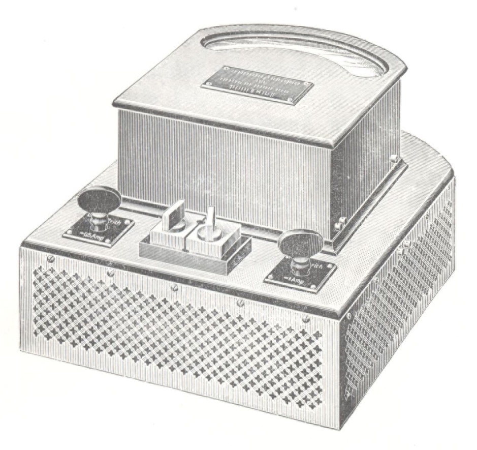 Das seit 1900 gebaute Instrument ist ebenfalls nach rein elektrodynamometrischem Prinzip gebaut, hat direkte Zeigerablesung und aperiodische Ein- Stellung des Zeigers. Durch geeignete Anordnung der Spulen, die in Parallelschaltung liegen, ist statt einer quadratischen Skala eine auf etwa dreiviertel ihrer Länge möglichst proportionale erreicht. Die Angaben des Instrumentes sind ebenfalls von der Temperatur seiner Umgebung und der Dauer der Einschaltung unabhängig; das Instrument besitzt zwei Meßbereiche, die mit besonderen Kontaktstöüseln eingeschaltet werden.