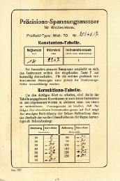 Dem Gerät liegt auch eine Prüfkarte von 12.1921 bei, auf dieser ist auch die Korrektions-Tabelle enthalten.