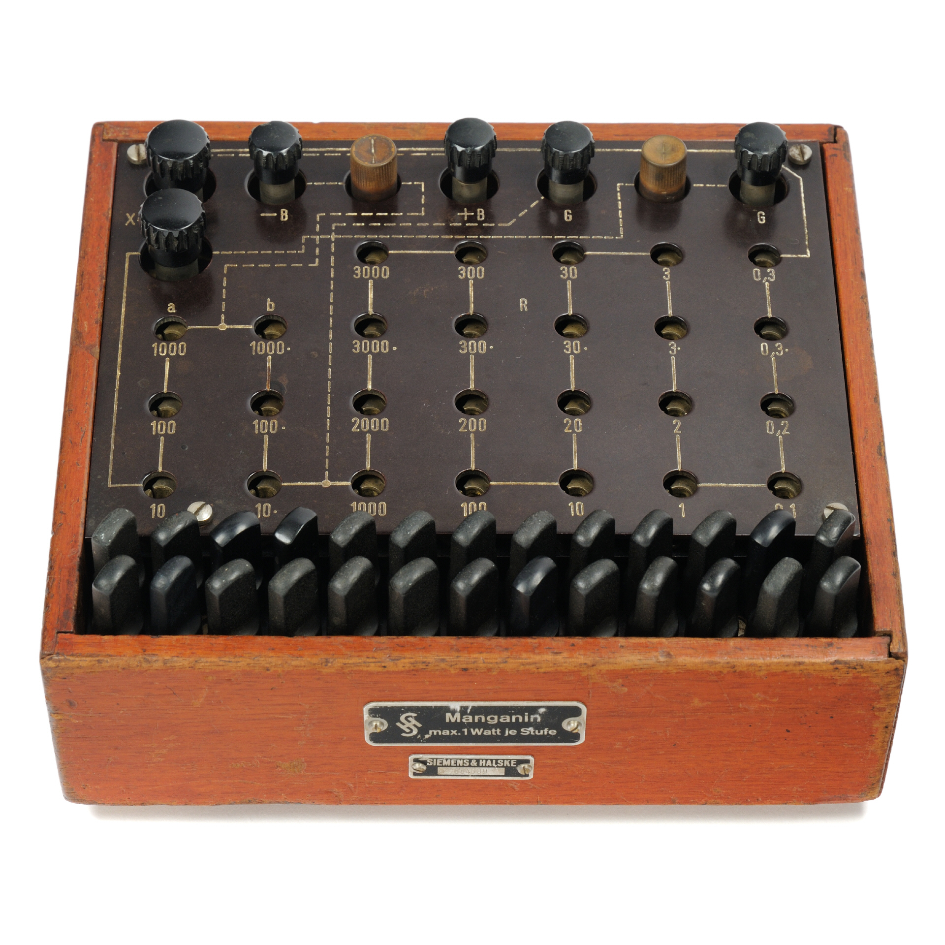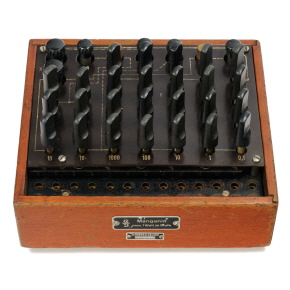 Kleine Stöpsel Messbrücke mit Vergleichswiderstand in Reihenschaltung Listen-Nr.: 157640 |