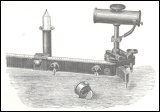 | Selen-Photometer von Werner v. Siemens.Das Selen-Photometer beruht auf der Eigenschaft des Selens, bei Belichtung seinen elektrischen Widerstand zu ändern. Der die Selenzelle enthaltende Apparat wird abwechselnd auf eine normale Lichteinheit und die zu messende Lichtquelle gerichtet, während der jeweilig die Zelle durchfließende Strom beobachtet wird.