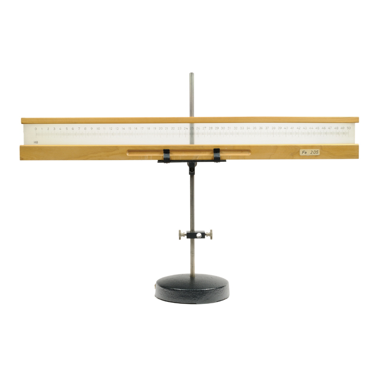 Waagerechte Lichtzeigervorrichtung für Spiegelgalvanometer mit 50cm langer Skala aus mattem Plexiglas, sowie Träger mit Fuß |