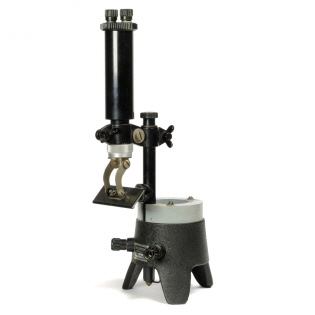 Die Beleuchtungsvorrichtung GB4 wird über eine Schelle direkt an den Schaft des Galvanometers geschraubt. Im oberen Zylinder sitzt die Glühbirne. Durch ein Prisma (fehlt hier) wird der Lichtstrahl zum Messwerk und dann zurück zum Spiegel (vorhanden) geleitet, der diesen dann vertikal nach unten leitet.