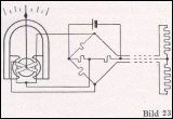 Da die psychrometrische Differenz mit zunehmender Raumtemperatur für ein und dieselbe rel. Feuchtigkeit größer wird, wird ihr Einfluß durch eine Spezialschaltung berichtigt. Als Fühlorgan werden zwei Widerstands - Thermometer verwendet, von denen das eine mit einem feuchten Strumpf überzogen ist. Die psychrometrische Differenz ruft eine Widerstandsdifferenz hervor, die sich in der Brückenschaltung auf ein Spezial-Kreuzspul- gerät auswirkt, das unmittelbar in Prozent rel. Feuchtigkeit geeicht wird. Die Unabhängigkeit von der Raumtemperatur ist infolge des unregelmäßigen Verlaufes der Psychrometerkurve an gewisse Grenzen gebunden. Als normale Temperatur-Gültigkeitsbereiche werden 1 ... 20°C oder 10 ... -40°C oder 30 ... 90°C angegeben. Als Stromquelle werden 4 ... 6 V benötigt, der Stromverbrauch beträgt etwa 120 mA.
