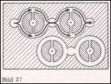 Die Anzeigegeräte haben die bei elektrischen Geräten üblichen Formen. Die Registrierung erfolgt gewöhnlich durch Punktschreiber; die von diesen in gleichmäßigen Zeitabständen aufgezeichneten Punkte reihen sich fast lückenlos zu einer Kurve aneinander. Die gleichzeitige Registrierung mehrerer Meßwerte erfolgt zweckmäßig durch Mehrfarben-Punktschreiber, die sich selbsttätig auf die einzelnen Meßstellen umschalten. Anzeige- und Schreibgeräte können Kontakte für Signalgebung bei Über- oder Unterschreitung bestimmter Konzentrationswerte erhalten. Die Regelung erfolgt durch „Fallbügelregler“, die mit kräftigen Quecksilber- Kippröhren zur direkten Steuerung von motorgetriebenen Schiebern oder Ventilen ausgerüstet sind. Aufbau und Arbeitsweise der Fallbügelregler siehe Fallbügelregler . Voraussetzung für genaue Meßergebnisse ist, daß der die Meßdrähte durchfließende Strom stets konstant ist. Das setzt eine Stromquelle mit konstanter Spannung voraus. Als solche kann ein Sammler verwendet werden, wobei jedoch der Strom von Zeit zu Zeit nachzuregeln ist. Zweckmäßiger ist jedoch ein Konstant-Transformator, der an das Wechselstromnetz angeschlossen wird. Durch eine besondere Kunstschaltung werden Spannungsschwankungen des Netzes bis etwa 15% ausgeglichen, so daß die mit Hilfe eines Trockengleichrichters erzeugte Gleichspannung praktisch konstant bleibt. Das Anzeige-, Schreib- oder Regelgerät kann in praktisch beliebiger Entfernung von der Entnahmestelle angebracht werden. Die Geräte können also zusammen mit anderen Fernmeßgeräten (z. B. für Temperatur, Druck, Menge) und den Steuer- und Schaltgeräten auf einer gemeinsamen Tafel angeordnet werden, so daß jederzeit übersichtliche und bequeme Überwachung und Beeinflussung aller wichtiger Vorgänge von einer Stelle aus möglich ist. Im allgemeinen wird ein Gaskonzentrationsmesser nur für ein bestimmtes Meßgas geeicht. Als Vergleichsgas wird in den meisten Fällen atmosphärische Luft verwendet. Weicht aber die Wärmeleitfähigkeit des Meßgases sehr stark von der der Luft ab, so wird an deren Stelle ein anderes Vergleichsgas gewählt, das etwa die Wärmeleitfähigkeit des Meßgases besitzt. In diesem Fall erhält die Meßkammer zwei weitere Zuleitungen für das Vergleichsgas. Es kann aber auch ein Vergleichsgas bestimmter Zusammensetzung vollkommen dicht in der Vergleichskammer abgeschlossen werden; dieses wird in eine Glaspatrone, die auch den Meßdraht enthält, gasdicht eingeschmolzen. Diese Anordnung ist stets dann zu bevorzugen, wenn ein Vergleichsgas konstanter Zusammensetzung nicht oder nur in unzureichender Menge zur Verfügung steht. Auf diese Art läßt sich dann jeder Meßbereich mit höchster Genauigkeit erfassen.