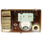 | Mit dem Modell W3 beginnt die 2. Generation von Patent-Röhrenprüfgeräten von Funke. Wie das Modell W1 ist es als Tischgerät für Wechselstromanschluss ausgelegt. Das Gerät bietet verschiedene Heizspannungen und mehrere Anoden- und Hilfsgitterspanungen. Das Gerät besitzt ein großes, rundes Anzeigeinstrument mit Chromrand. Es bietet neben der Röhrenprüfung auch Röhren-Krachelkontrolle, Kennlinienaufnahme, Messung von Hochohmwiderständen, Kondensatoren Spannungsfestigkeit, Gleichstrommessung bis 100mA und Gleichspannungsmessungen bis 250 Volt. Inklusive Ergänzungslieferungen umfasst der Prüfkartensatz ca. 230 Karten. | |