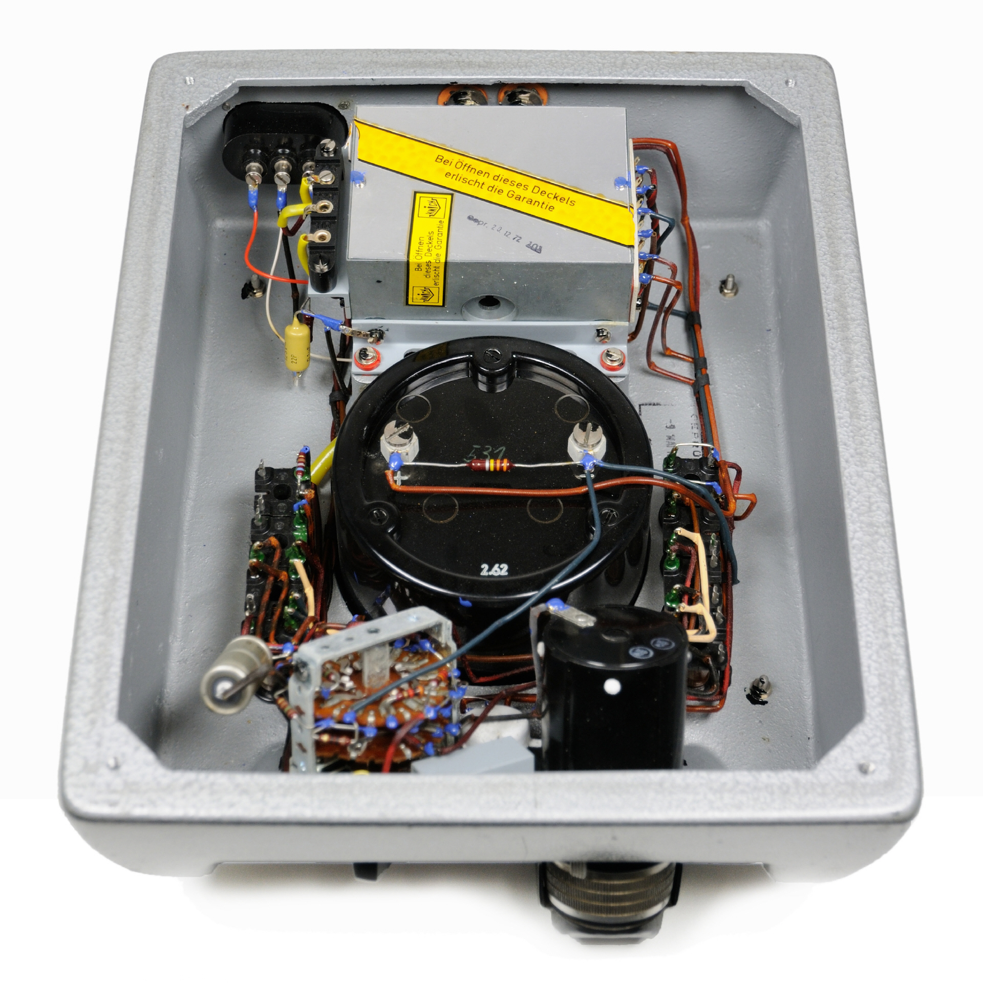 1963-05-09 (Stempel auf der Innenseite) 1962-02 (nur das Gossen Messwerk) 1972-12-20 (Reparatur Messverstärker, Stempel) |