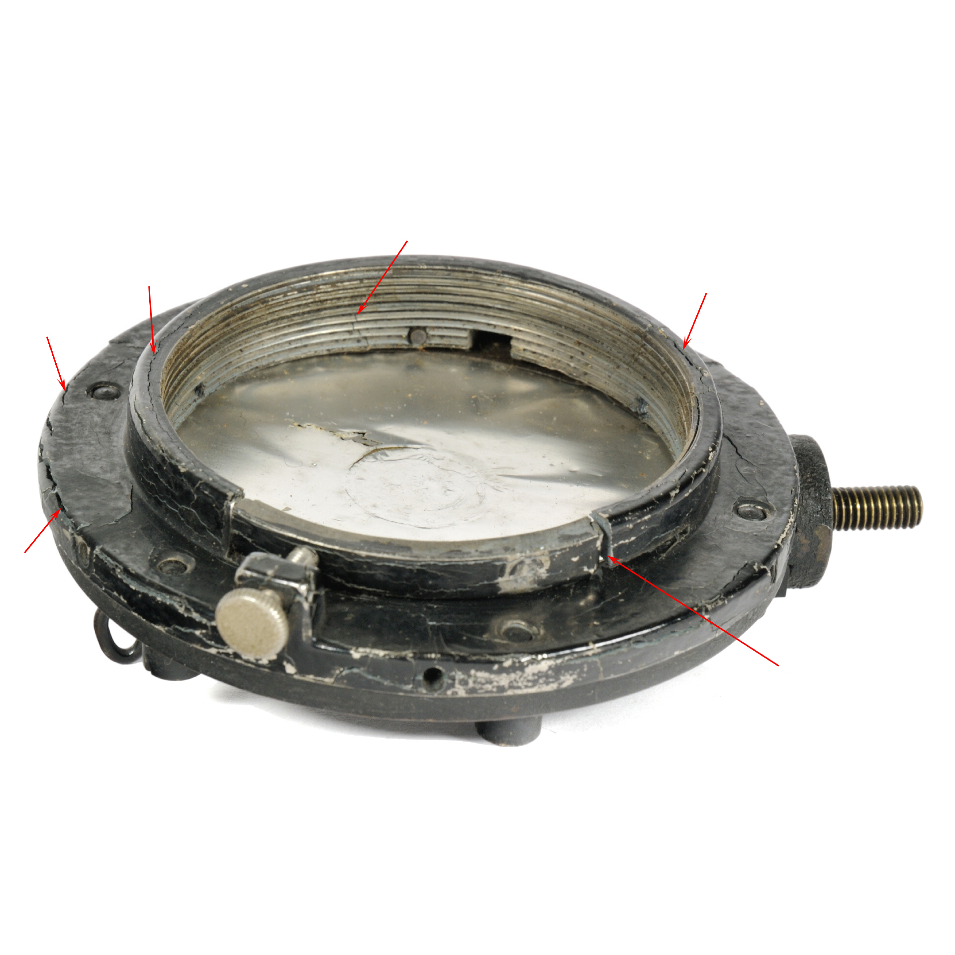 4/- Unvollständig, nicht betriebsbereit eine Messdose fehlt, bei der vorhandenen Messdose fehlt das Spiegelsystem; teilweise gravierende Schäden durch Zinkfraß. |