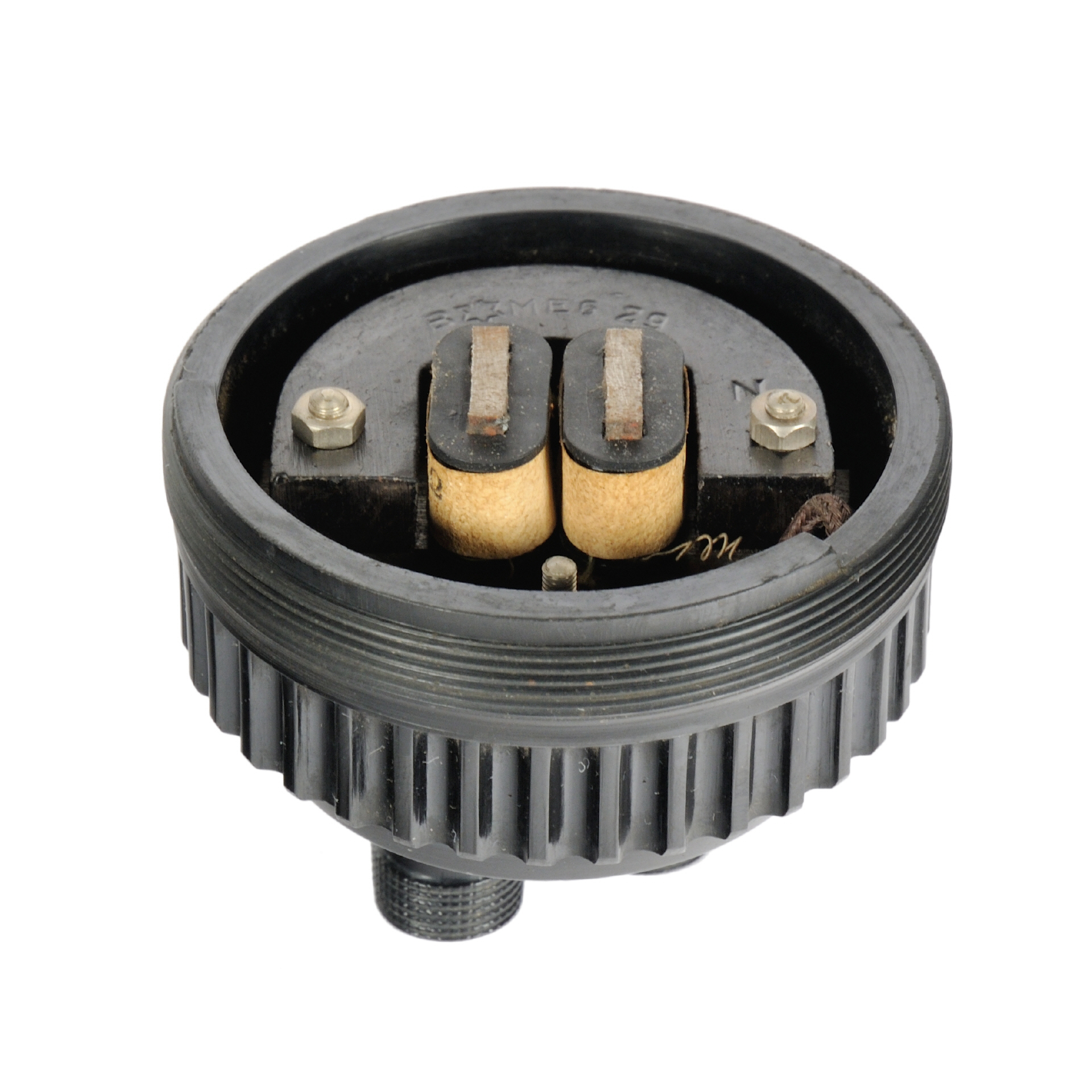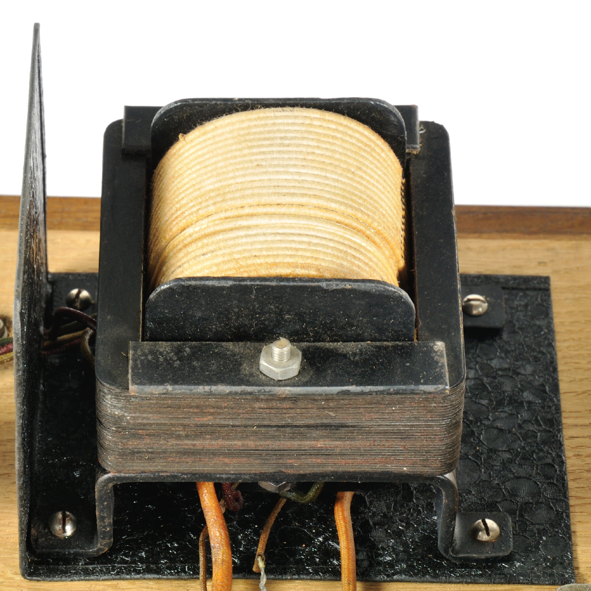 Potentiometer, hergestellt von der Firma H. Grau ("Hegra"). Transformator, Hersteller unbekannt. Interessant ist der verwendete textilbezogene Draht für die Sekundärwicklung. |