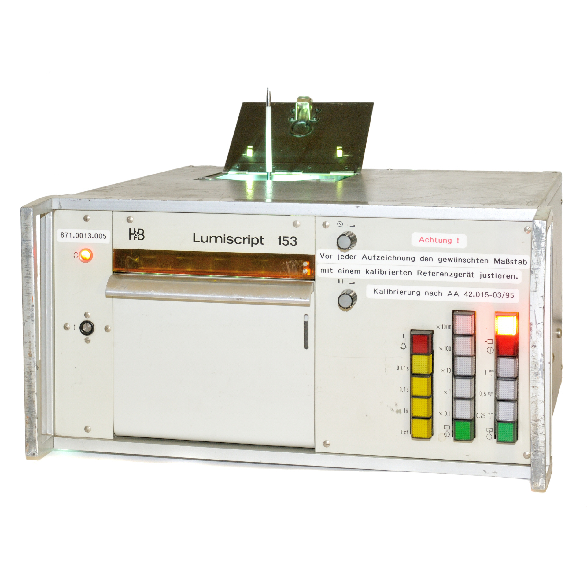 | Der LUMISCRIPT 153 ist eine Weiterentwicklung des LUMISCRIPT 150-8 und hat einen ähnlichen mechanischen und elektrischen Aufbau. Der Magnetblock ist zur Aufnahme von 12 Spulenschwingern vom Typ HMK ausgelegt. | |