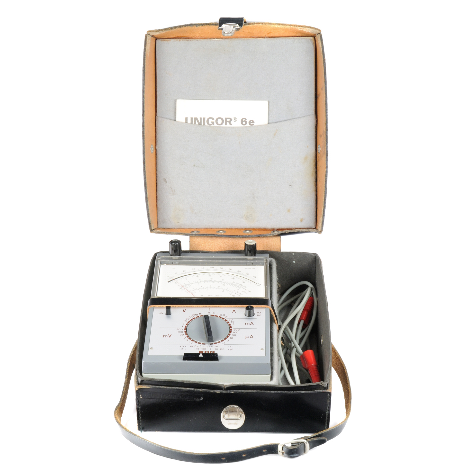 | Beschreibung | Ledertasche mit Schnappverschluß, separates Fach für Messleitungen und Handbuch (im Deckel) |