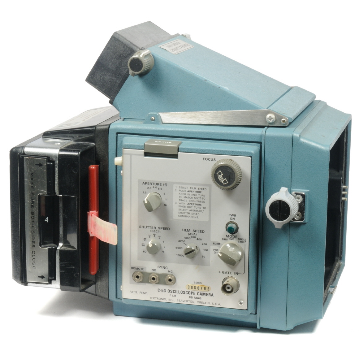 ![[00901] Oszilloskop Kamera C-53 für Tektronix 5x und 7x Oszilloskope mit Polaroid Camera Pack Film Back No. 122-0926-00](../../../images/00901_tektronix_c-53_righttable25.jpg)