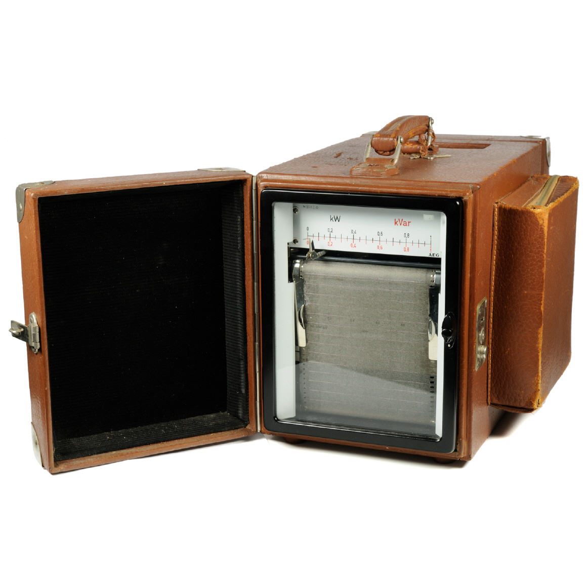 ![[00446] Leistungsschreiber für Drehstrom (Bauform ERN12) mit einem Messwerk (Metallpapier-Linienschreiber) in Lederkoffer, dazu gehörend der passende Vorwiderstand 00447; AEG; 1973](../../images/00446_d_aeg_schreiber_boxtable25.jpg)