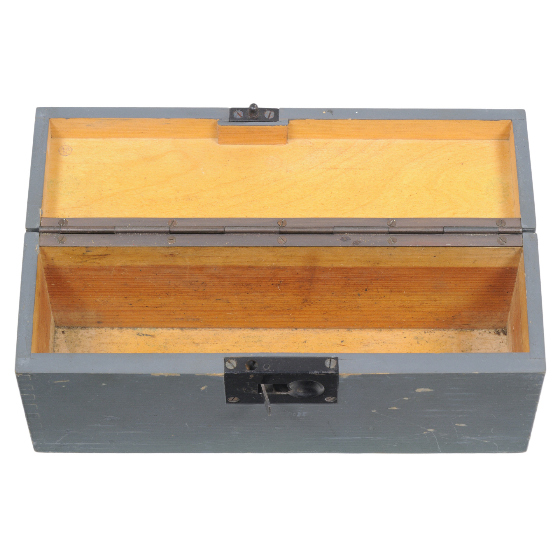 Der Funk-Röhren-Prüfgerätesatz Fu RPG.1, Ln 25115 besteht aus einem betriebsfertigen Röhrenprüfgerät RPG.1, Ln 25520 mit Zusatzkasten 1 und einem Satz Vorratssachen. Das Röhrenprüfgerät RPG.1 dient zur Prüfung der im Nachrichtenwesen verwendeten Empfängerröhren sowie verschiedener Sender-, Verstärker- und Gleichrichterröhren kleinerer Leistung. Der hier vorgestellte Gerätesatz besteht aus: - Röhrenprüfgerät RPG.1 (Ln 25520) - 21 (von 27) Schaltsschlüssel in einer Tasche (Ln 25523-x) - Zwischenfassung für Röhre RS 242 spez. (124-212-07-U.05) - Prüfschnur mit Anodenschraubanschluss (Ln 25521) - Prüfschnur mit Kappe (Ln 25522) - Bedienungsanweisung (124-212.09-02) - Anschlussanweisung (124-212.07-38) - Schutzkasten für Zusatzkasten 1 (124-212-11-U.10) |