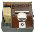 [01130] Das Modell W9 ist die letzte Weiterentwicklung der 2. Generation der Patent-Röhrenprüfgeräte von Funke. Die bereitgestellten Heiz-Spannungen und die Prüfkarten entsprechen den Modellen W3 bis W7. Bittorf & Funke, Weida i. Th.; ca. 1935