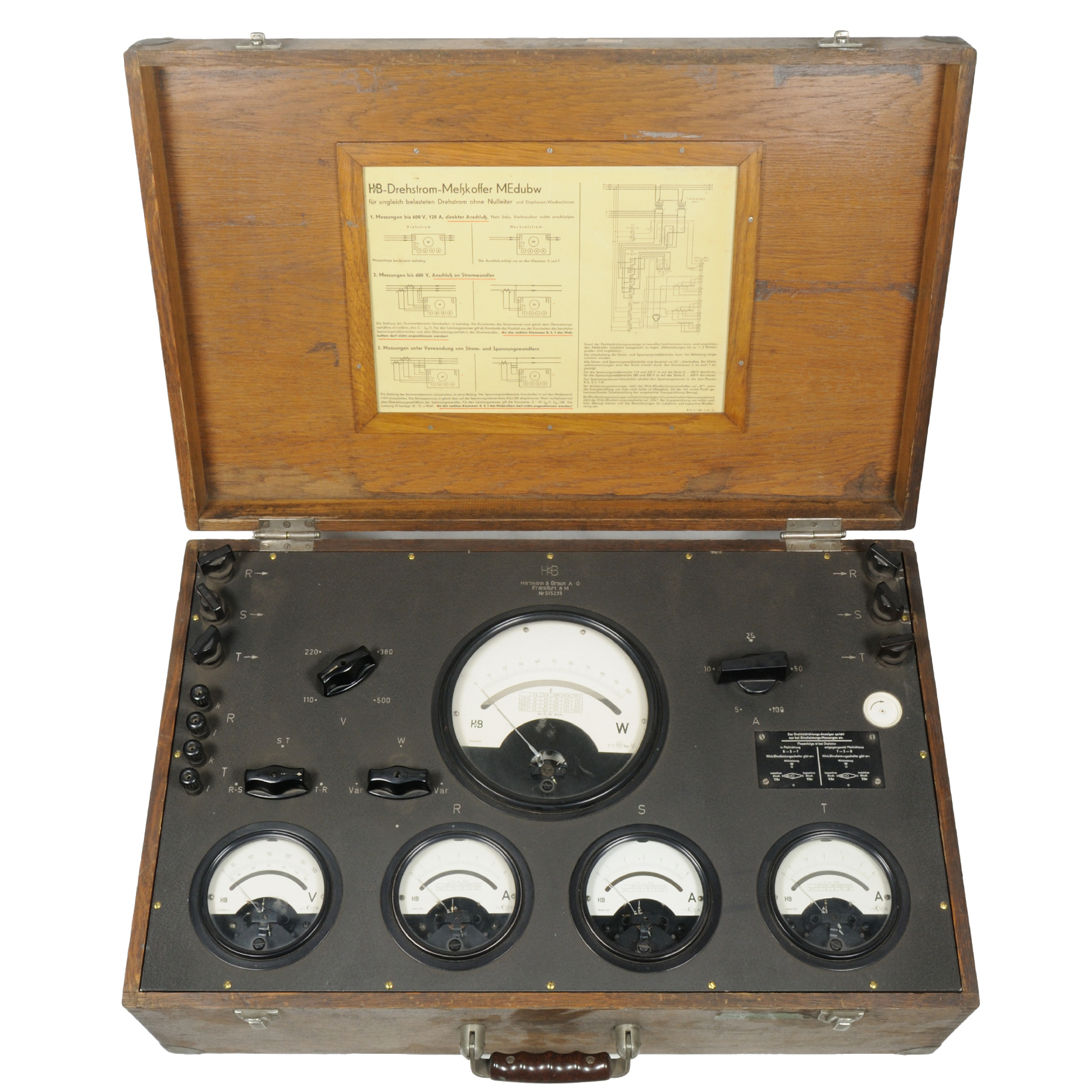 Gerätenummer: 515239 Wattmeter - Skalennummer 2459983 - Herstellung 1952 Voltmeter - Skalennummer 2458616 - Herstellung 1952 Amperemeter R - Skalennummer 2484383 - Herstellung 1952 Amperemeter S - Skalennummer 2484392 - Herstellung 1952 Amperemeter T - Skalennummer 2484395 - Herstellung 1952 |