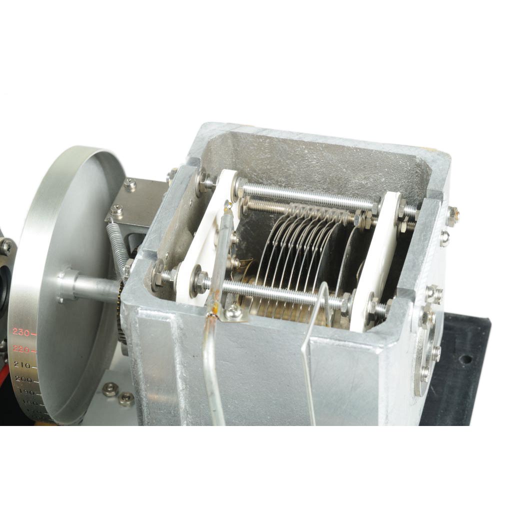 Das Gerät besteht aus zwei Präzisions Drehkondensatoren und mehreren festen Kondensatoren, die über einen Umschalter geschaltet werden.