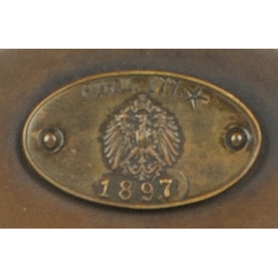 | Beschreibung | Der Widerstand ist mit dem amtlichen Bleisiegel versehen und mit dem Reichsadler, der Beglaubigungsnummer PTR 177/1897, sowie einem Stern als Präzisionswiderstand gestempelt, da er bei der auf ihm angegebenen Temperatur um weniger als 0,001 seines Betrages von dem Sollwert abweicht. |