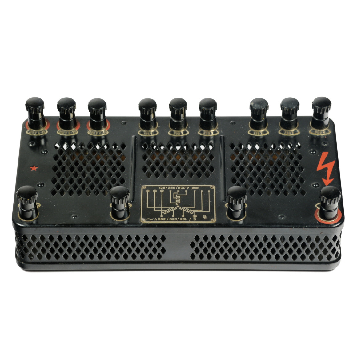 Aus der Werbung von 1934: Klein, leicht und handlich sind unsere neuen Tischinstrumente, deshalb auf Reise und Montage, in Werkstatt und Betrieb gleich bequem zu benutzen. Nahezu alle elektrischen Größen kann man mit ihnen messen: Strom, Spannung und Leistung, Gleichstrom und Wechselstrom beliebiger Frequenz. Die vielfach umschaltbaren Instrumente ersetzen einen ganzen Satz entsprechender Einzelinstrumente. Die Instrumente Type Z sind durch hohe Meßgenauigkeit auch für sehr viele Laboratoriumsmessungen geeignet. Sie werden darum in grötem Umfang bei den Versuchen in Hochschulen und Universitäten verwendet, fernen für alle genaueren Messungen in Starkstrom-, Fernmelde- und Rundfunkanlagen. Für gelegentliche Kontrollmessungen auf der Reise können sie in Lederkoffern zu beliebigen Meßeinrichtungen vereinigt werden. Die Z-Instrumente haben Preßisolierstoffgehäuse mit Bananensteckerklemmen und sind mit Messerzeiger uns Spiegelskala (etwa 80 mm lang) ausgestattet. Alle diese Instrumente besitzen Nullpunkteinstellung. Prüfspannung allgemein 2000 V. Besonderheiten des hier vorgestellten Exponats: Das Type Z Messgerät besitzt ein Blechgehäuse und einfache Schraubklemmen. In der Literatur aus der Zeit ist immer von Isolier-Presstoff-Gehäusen zu lesen. Ob die Geräte etwas älter sind oder es sich dabei um Spezialanfertigungen handelt, ist unklar. |