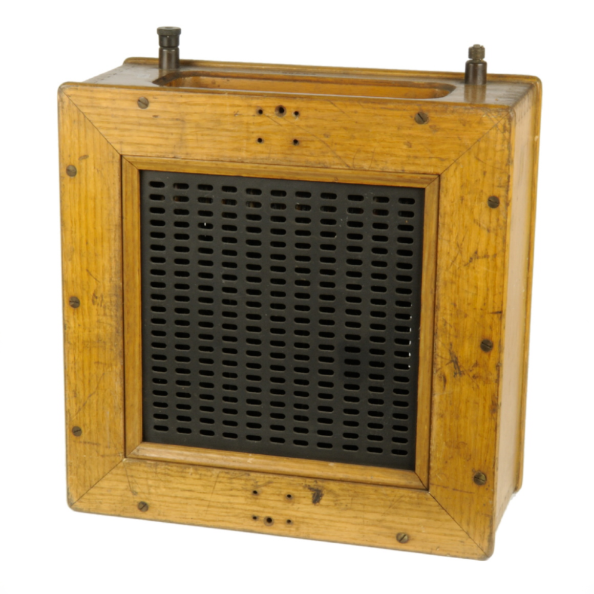 Das Gerät besteht aus einem massiven Eichenholzgehäuse und hat auf der Vorder-, Rück, Ober- und Unterseite jeweils große Belüftungsgitter, die aus Pressstoff (Pappe, ähnlich der Rückwände alter Radios) hergestellt sind. Innen ist der Widerstandsdraht (Manganin?) über zwei runde Spulenkörper (oben und unten) in mehreren Bündeln gewickelt. Auf der Rückseite sind noch Bohrungen von Beschriftungselementen zu erkennen.