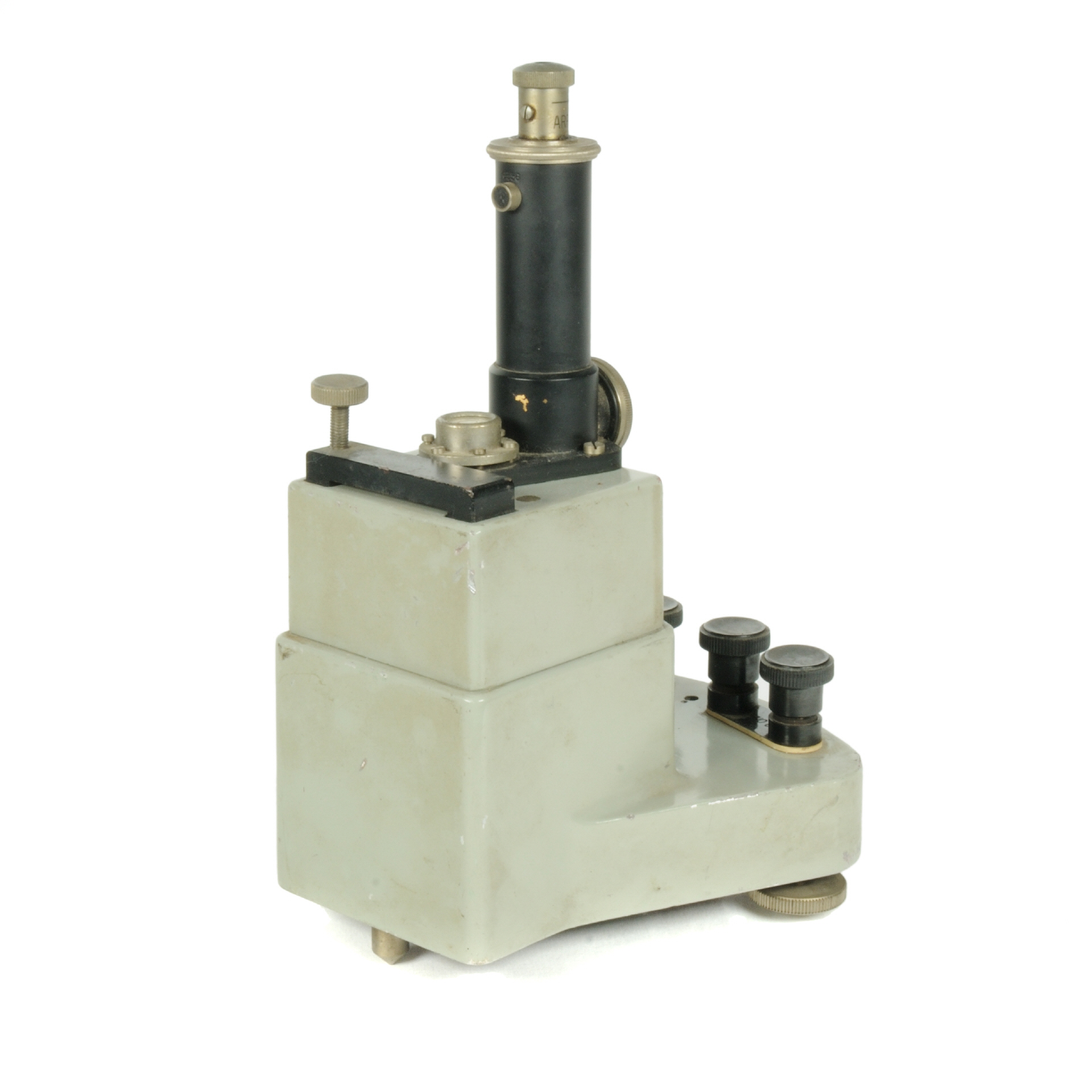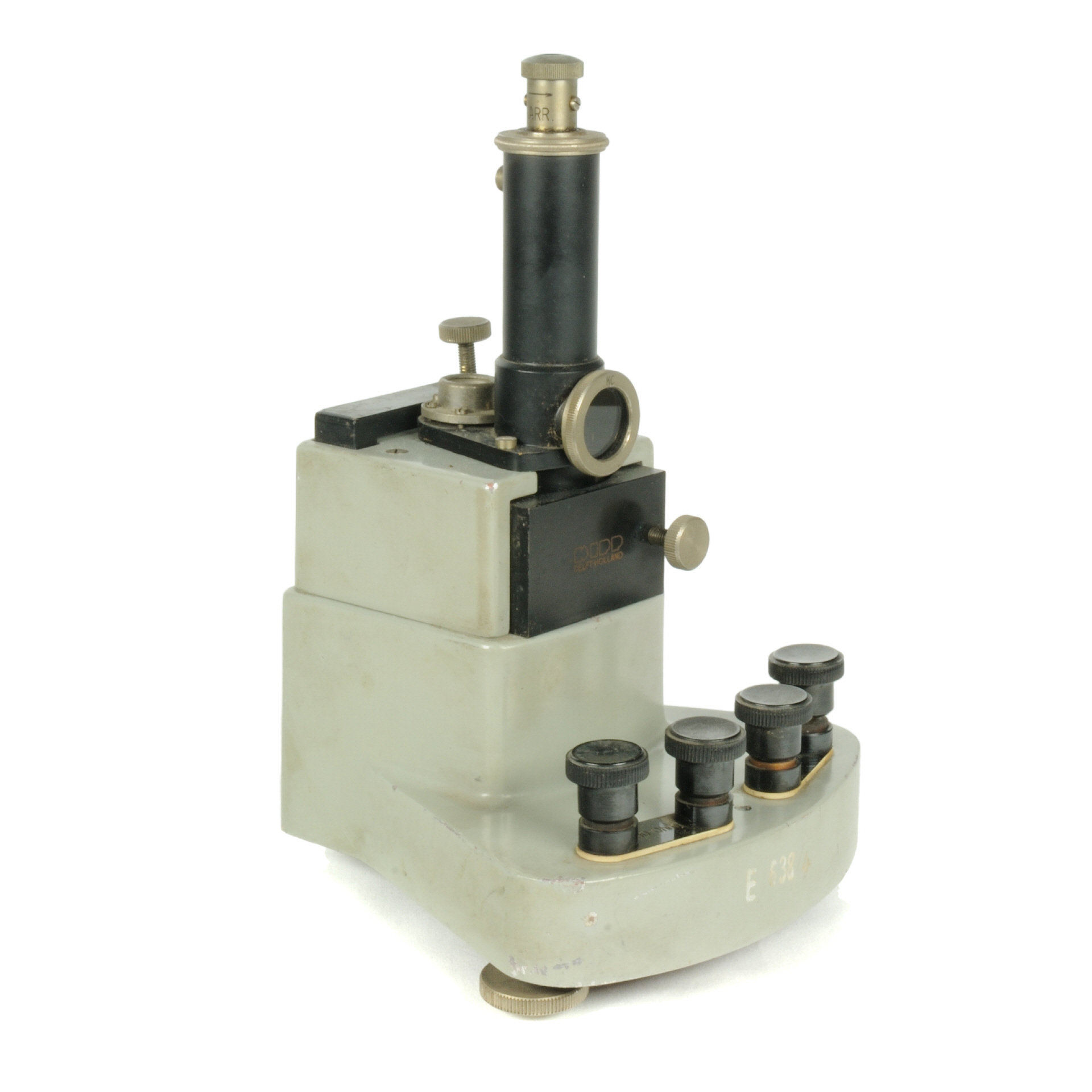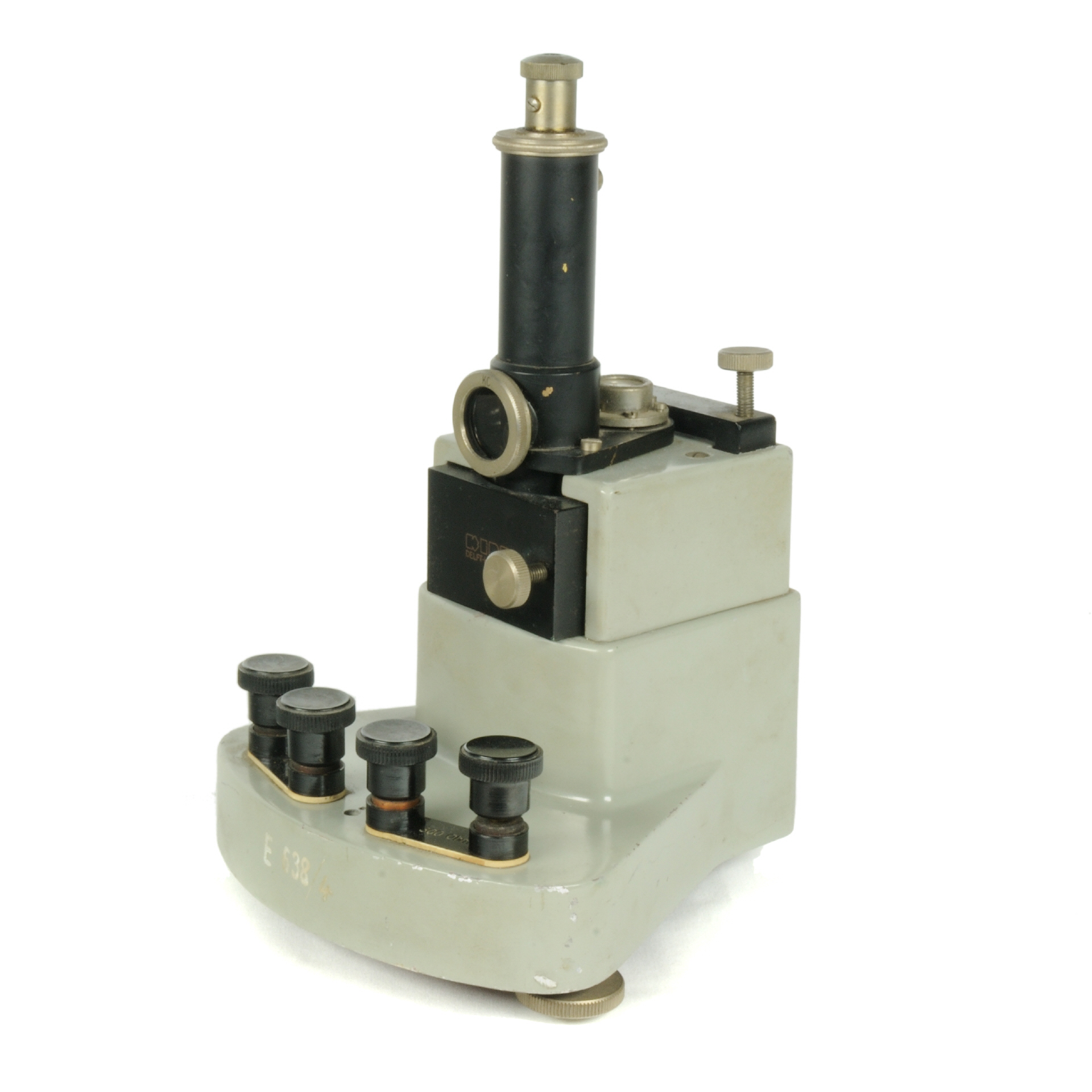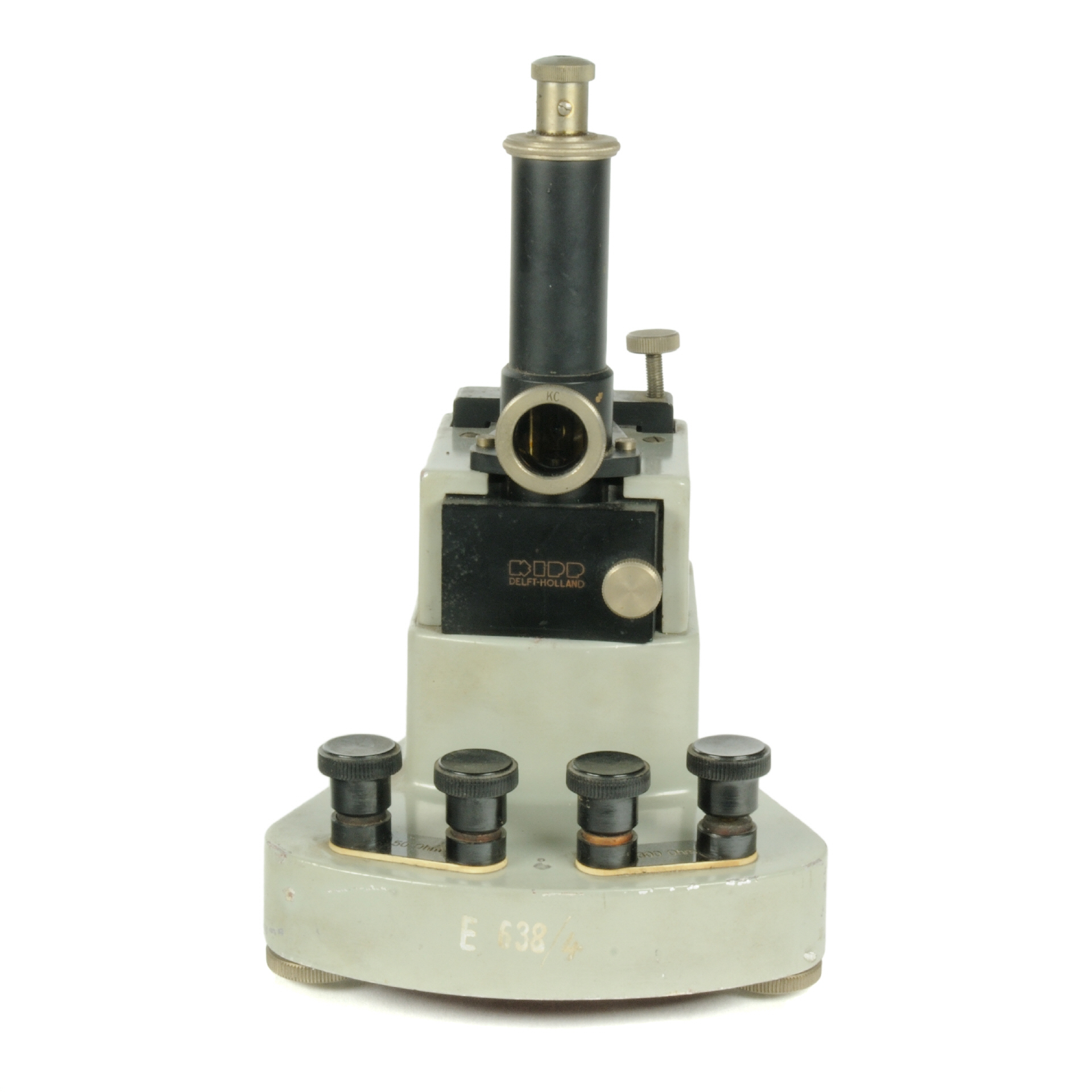 | Markierungen | Auf der Fron ist KIPP DELFT-HOLLAND eingraviert, eine Seriennummer ist nicht zu finden. Handschriftlich ist der Sockel mit "E 538" beschriftet, dies scheint eine alte Inventarnummer zu sein. Der Metallring des Schutzglases vor dem Spiegel ist mit "KC" oben mittig beschriftet. |