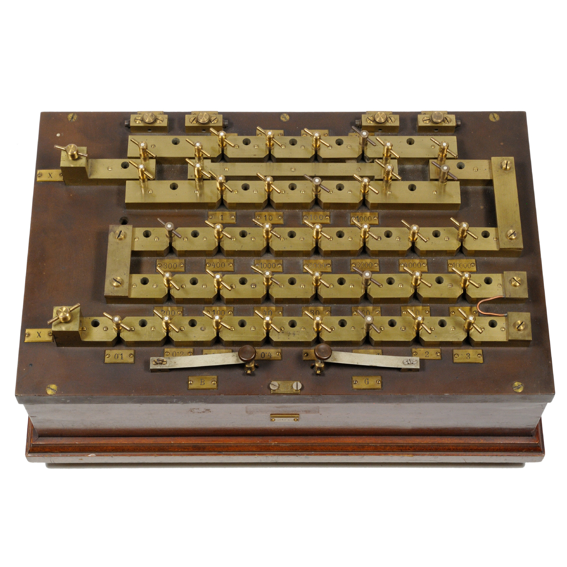 ![[00351] große Messbrücke / Kompensator mit Dekadenwiderständen in Stöpsel-Schaltung ; Hersteller unbekannt; um 1900](../../images/00351_d_nn_wheatstone_innentable25.jpg)