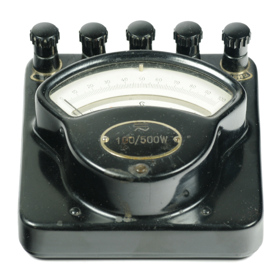 Aus der Werbung von 1934: Klein, leicht und handlich sind unsere neuen Tischinstrumente, deshalb auf Reise und Montage, in Werkstatt und Betrieb gleich bequem zu benutzen. Nahezu alle elektrischen Größen kann man mit ihnen messen: Strom, Spannung und Leistung, Gleichstrom und Wechselstrom beliebiger Frequenz. Die vielfach umschaltbaren Instrumente ersetzen einen ganzen Satz entsprechender Einzelinstrumente. Die Instrumente Type Z sind durch hohe Meßgenauigkeit auch für sehr viele Laboratoriumsmessungen geeignet. Sie werden darum in grötem Umfang bei den Versuchen in Hochschulen und Universitäten verwendet, fernen für alle genaueren Messungen in Starkstrom-, Fernmelde- und Rundfunkanlagen. Für gelegentliche Kontrollmessungen auf der Reise können sie in Lederkoffern zu beliebigen Meßeinrichtungen vereinigt werden. Die Z-Instrumente haben Preßisolierstoffgehäuse mit Bananensteckerklemmen und sind mit Messerzeiger uns Spiegelskala (etwa 80 mm lang) ausgestattet. Alle diese Instrumente besitzen Nullpunkteinstellung. Prüfspannung allgemein 2000 V. Besonderheiten des hier vorgestellten Exponats: Das Type Z Messgerät besitzt ein Blechgehäuse und einfache Schraubklemmen. In der Literatur aus der Zeit ist immer von Isolier-Presstoff-Gehäusen zu lesen. Ob die Geräte etwas älter sind oder es sich dabei um Spezialanfertigungen handelt, ist unklar. |