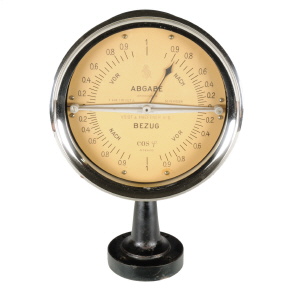 ![[00313] Elektrodynamischer Phasenmesser mit umlaufendem Zeiger für Leistungslieferung in wechselnder Richtung (Abgabe und Bezug), beides für Voreilung und Nacheilung - Typ Gph IV, Hartmann & Braun, 1923](../../../images/00313_d_hartmann_leistungsfaktor_fronttable25.jpg)