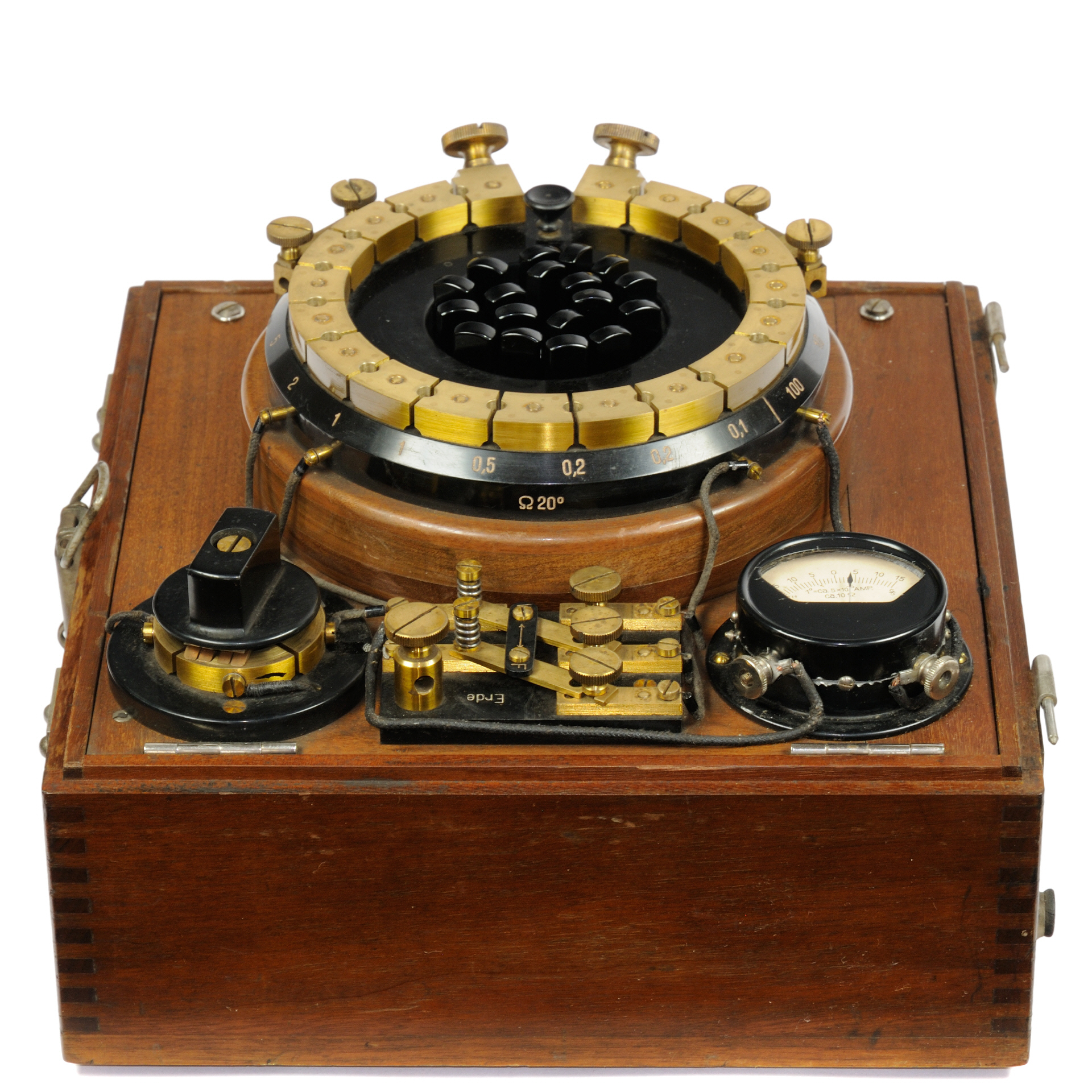 ![[00171] Montage- und Fehlerortungsmeßbrücke mit Stöpselschaltung, in Holzkasten mit Ledergriffen, Drehspulgalvanoskop; Siemens & Halske; ca. 1920](../../../images/00171_d_siemens_messbruecke_gesamt2table25.jpg)