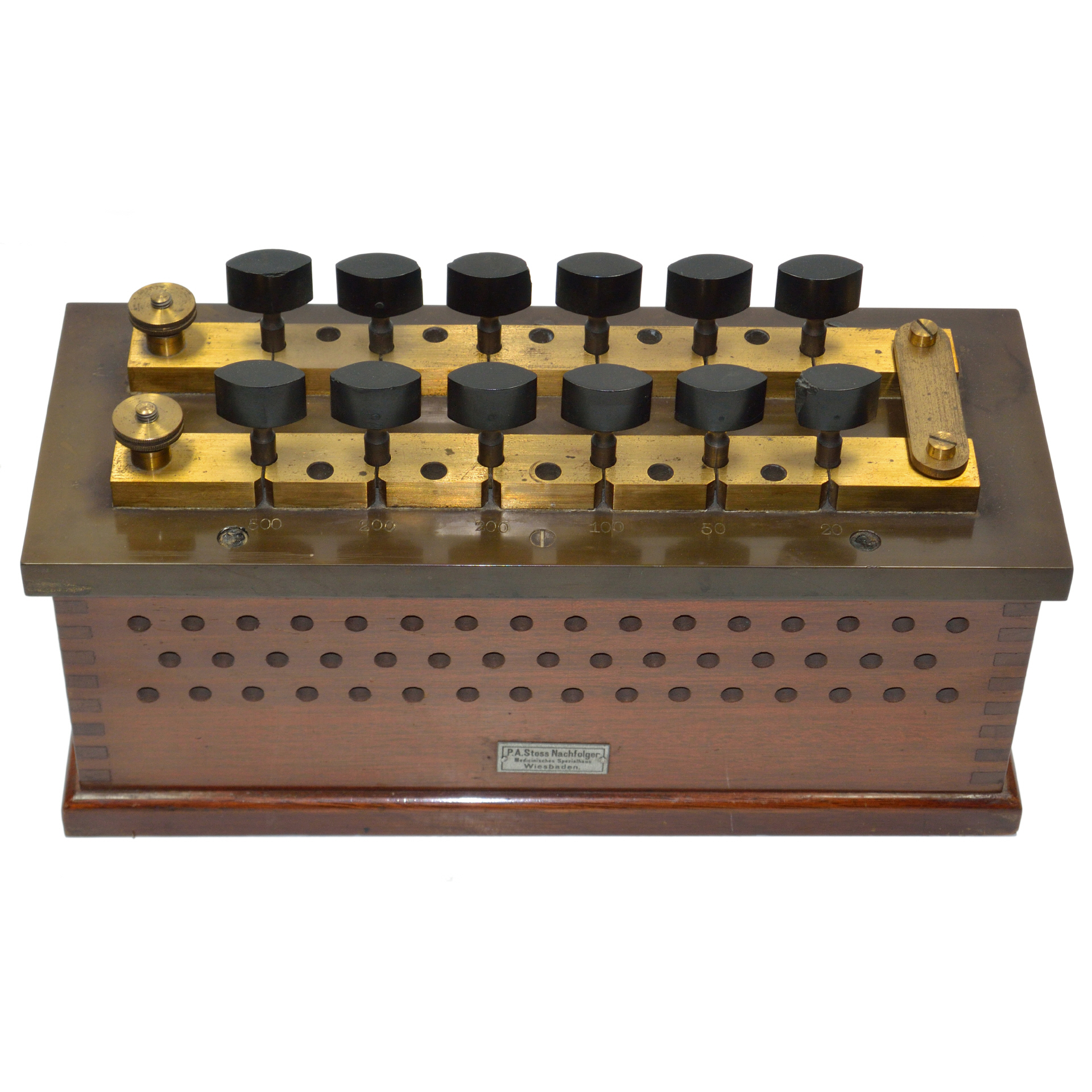 Über 12 Stöpsel lassen sich alle Widerstandswerte zwischen 1 und 1.110 Ohm herstellen.