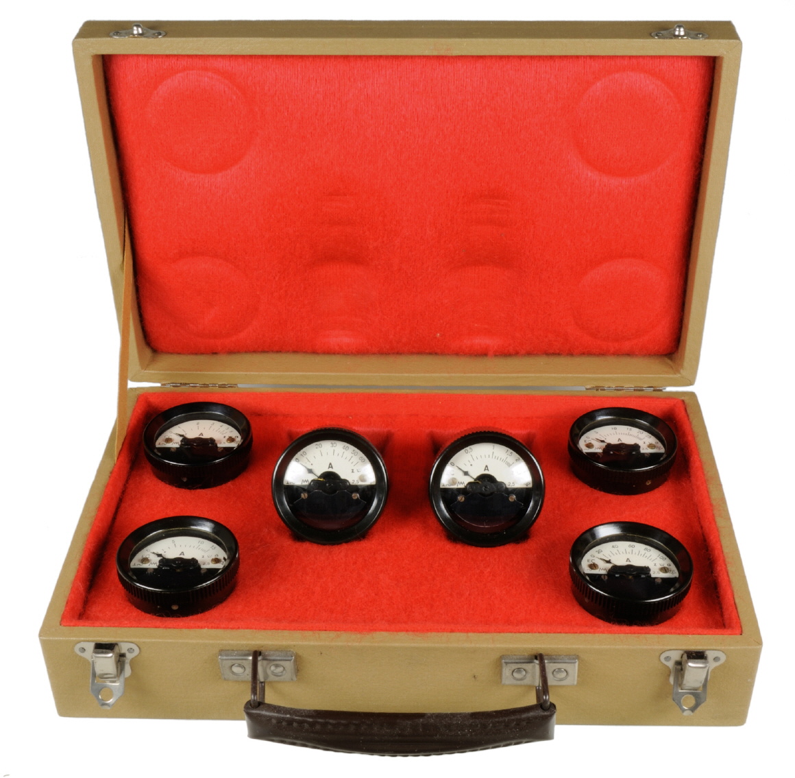 Ein handlicher kleiner Koffer (30 × 18 × 7 cm) im Gesamtgewicht von 1,75 kg enthält 6 Ampéremeter (2 – 6 – 15 – 25 – 60 – 100 Ampere) und zwei Gewindeköpfe zum Einschrauben in die Sicherungs-Elemente E II (25 Amp.) und E III (60 Amp.). (Zu Messungen in Anlagen mit Sicherungs-Elementen E IV, 100 Amp. wird auf Wunsch ein Reduzierstück mit Außengewinde E IV und Innengewinde E III geliefert.)